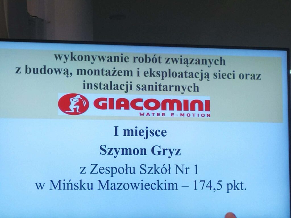 🧱‼️ Naszą szkołę dzielnie reprezentował SZYMON GRYZ z klasy 3m – monter sieci i instalacji sanitarnych i… zajął I miejsce 🏆🤩💪 Opiekunem ucznia był pan Kamil Wocial. GRATULUJEMY 🙌 👏