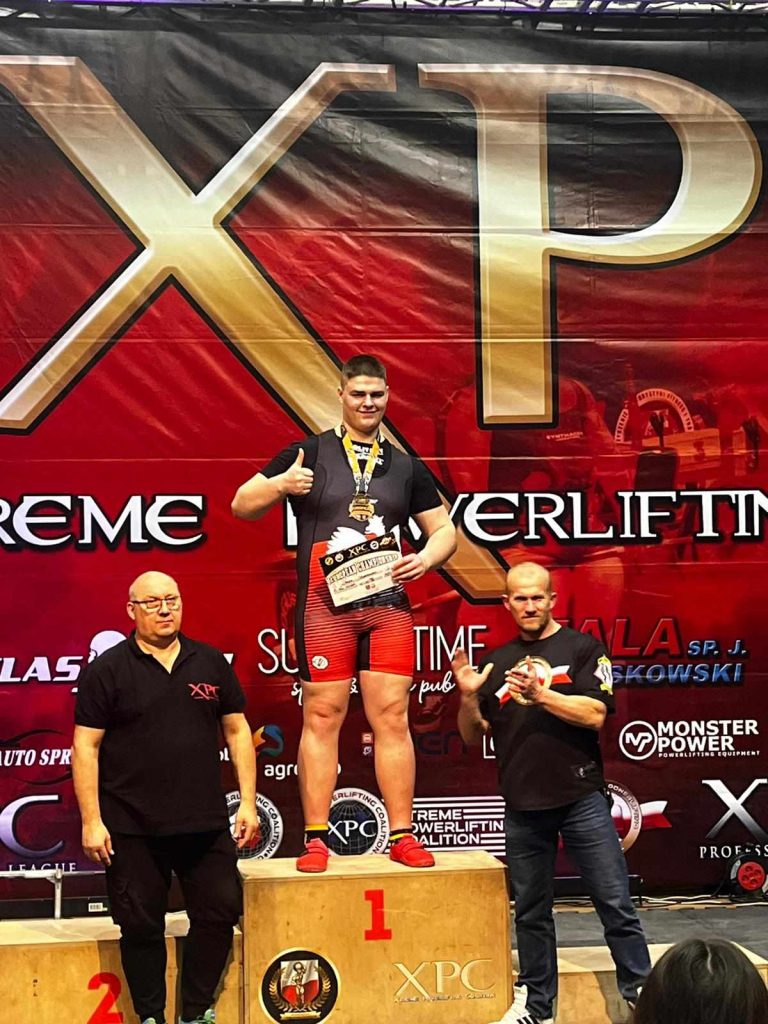Dawid Sendrowski z 2 MT po raz kolejny udowodnił, że jest najsilniejszy! Został mistrzem Europy w XPC European Championship 2024 r. w trójboju siłowym! Aby tego dokonać, musiał pokonać rywali, aż w trzech konkurencjach: Przysiad ze sztangą 225 kg wyciskanie sztangi leżąc 150 kg martwy ciąg 245 kg Startował w kategorii Teenagers 16-17 lat do