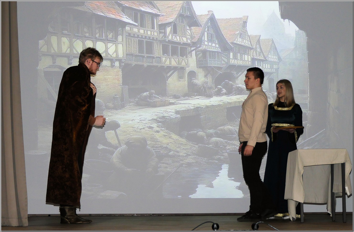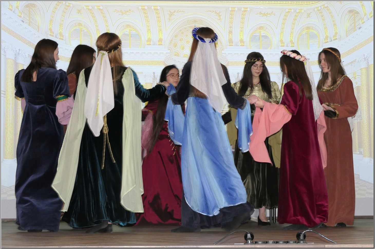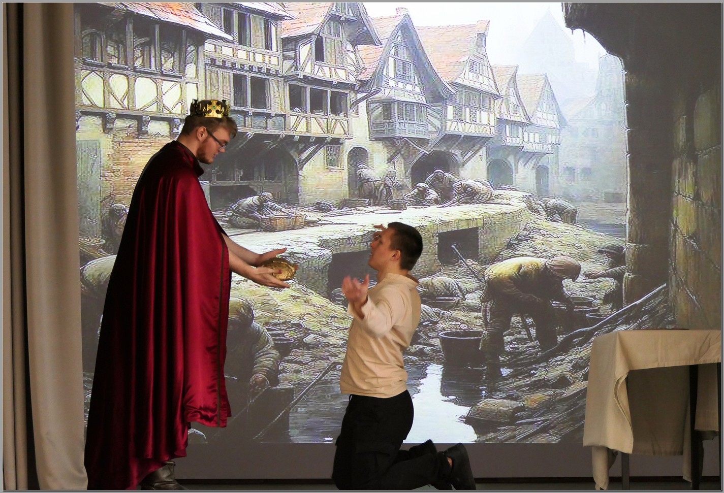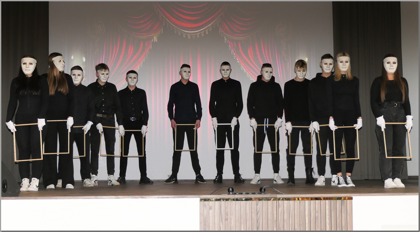 W części artystycznej uczniowie 3 PIN w nowoczesny sposób przedstawili Kazimierza Wielkiego – patrona szkoły, a uczniowie klasy 2 TRF w symboliczny sposób za pomocą pantomimy ukazali patrona auli. Uczniowie połączyli doświadczenie z nowoczesnością. Stroje średniowieczne, dzięki pani Jolancie Binkowskiej – kustoszowi szkolnemu, oddały tradycje, a pantomima masek i drewnianych ramek w rytm remiksu muzyki klasycznej oddały ponadczasowość tradycji społeczności Budowlanki.