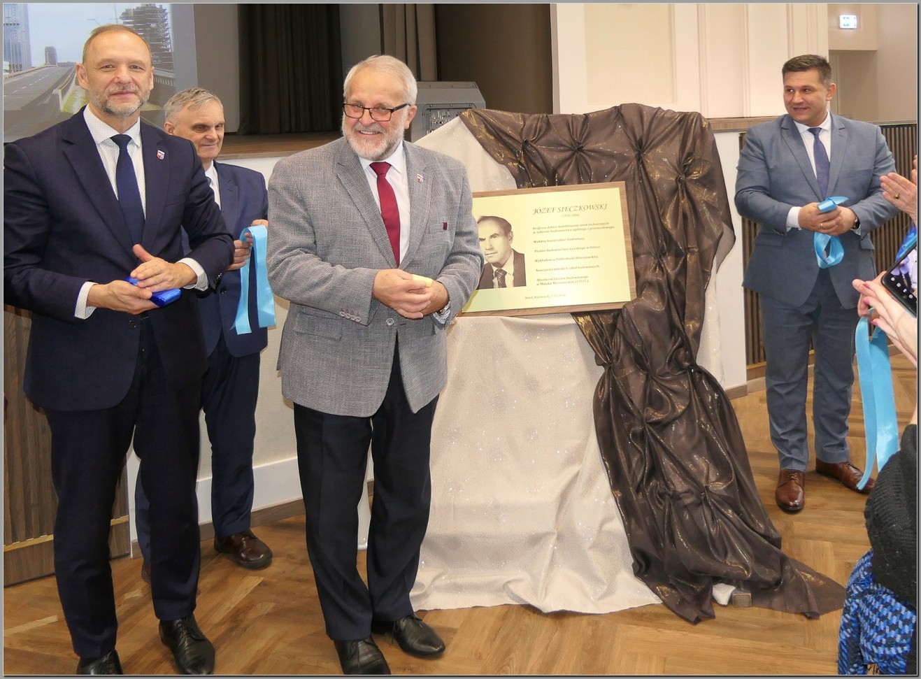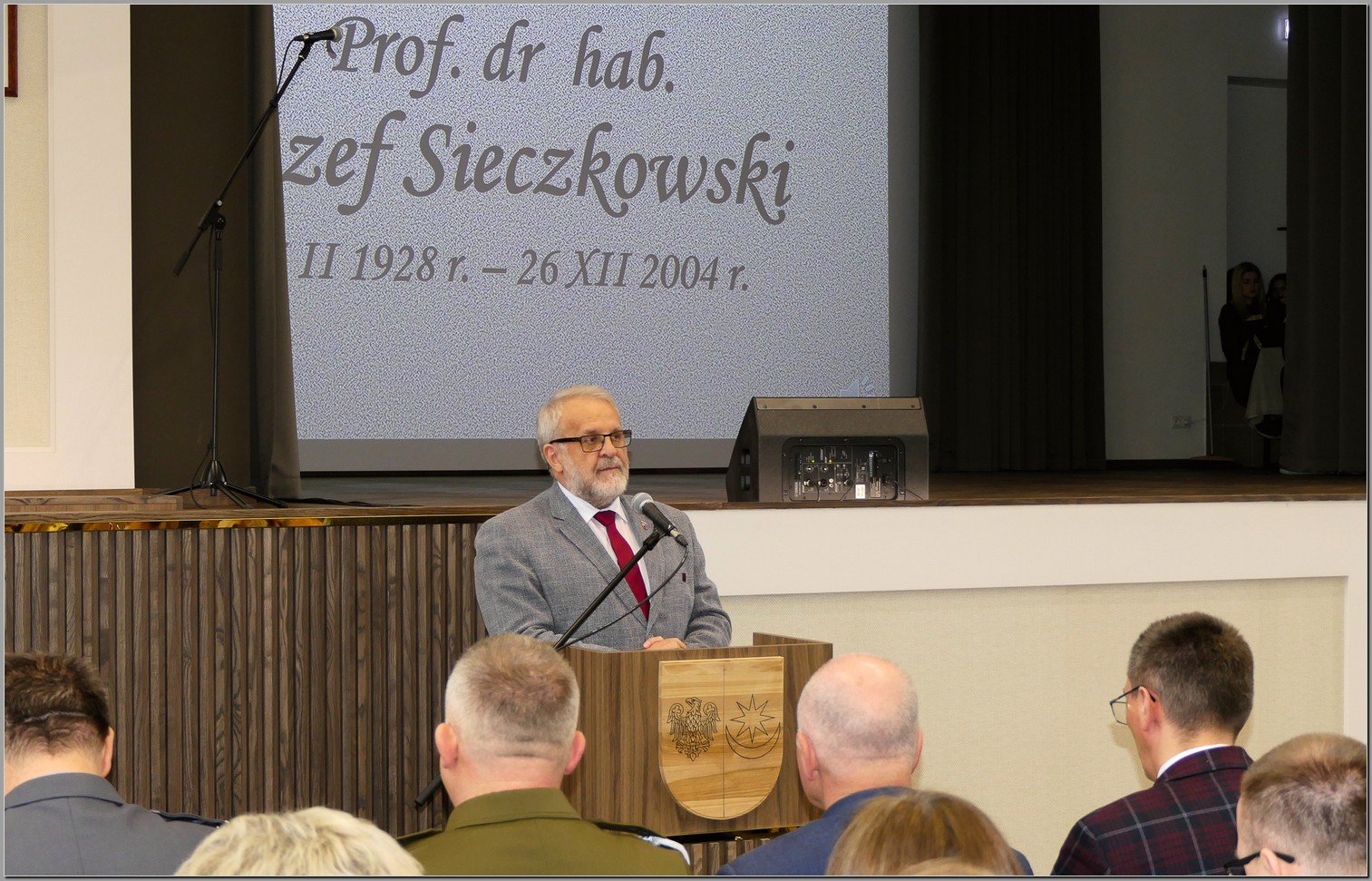 Pani dr Lilla Kłos wygłosiła prelekcję, pokazując obecność profesora od lat w Budowlance. Córka i syn Józefa Sieczkowskiego ukazali go jako człowieka wyjątkowego, pasjonatę budownictwa, ojca i dziadka. Z kolei pani wicedziekan Wydziału Inżynierii Lądowej PW – Wioletta Jackiewicz – Rek ukazała go z perspektywy znanego naukowca, dydaktyka i mentora. W obecności Starosty Jana Antoniego Tarczyńskiego odsłonięto tablicę upamiętniającą osobę Józefa Sieczkowskiego.