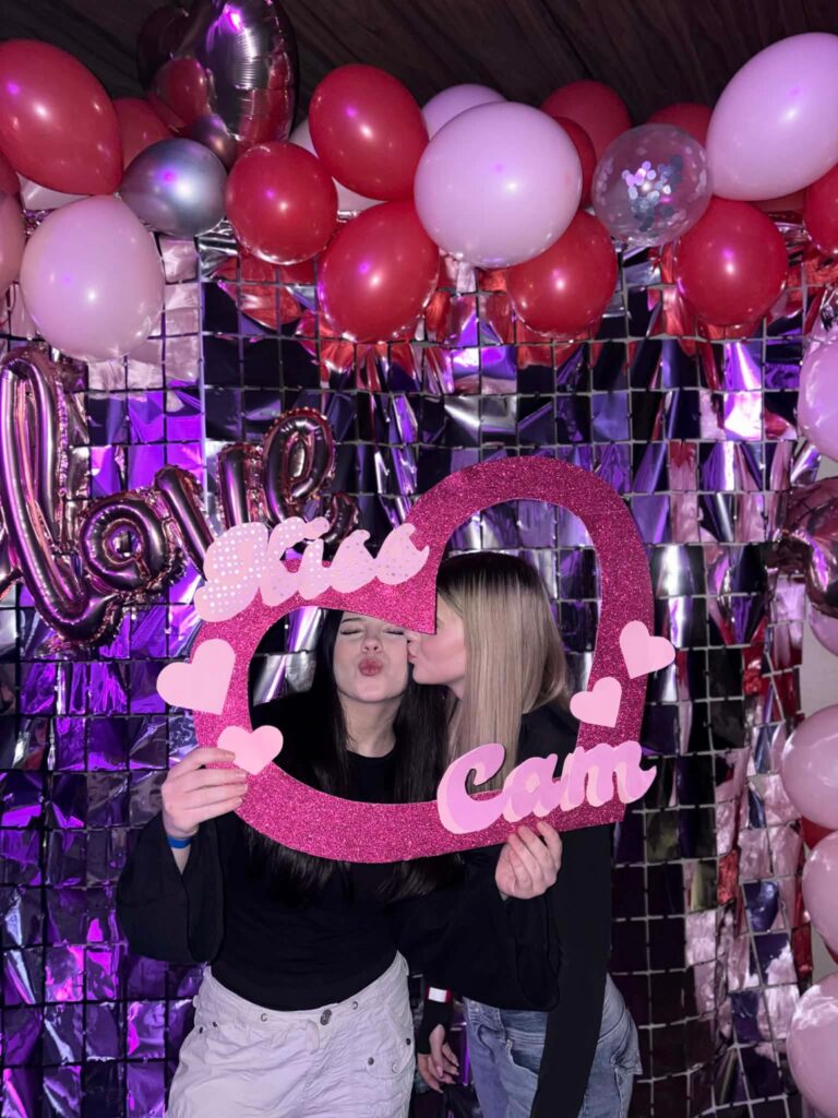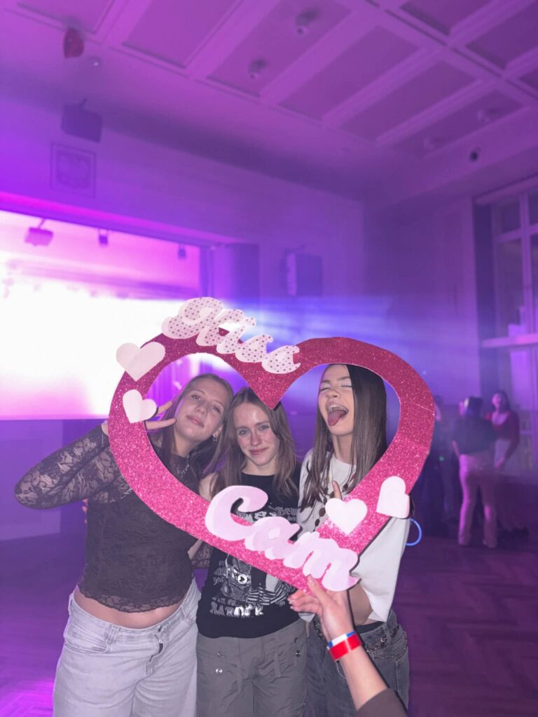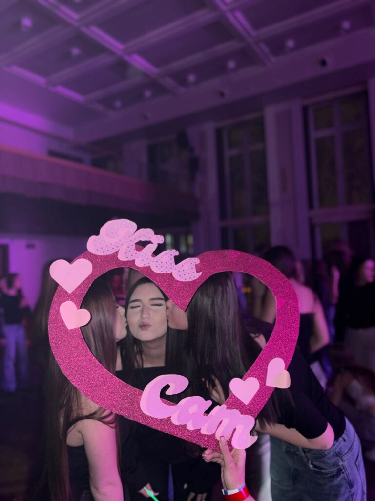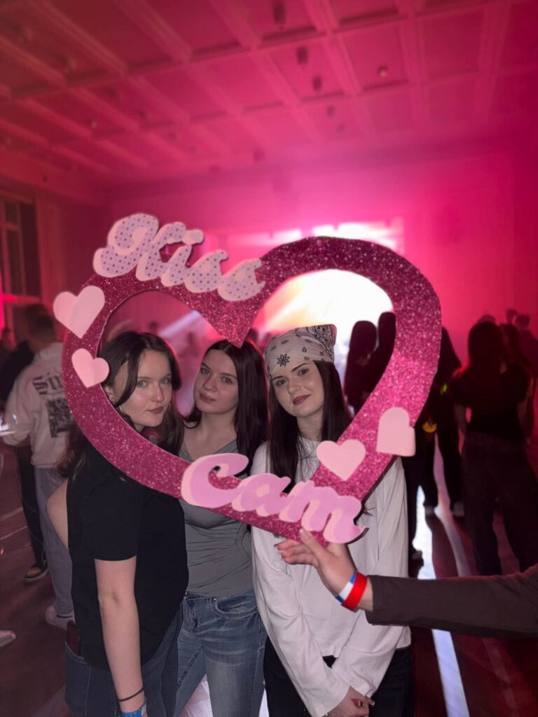 Uczniowie nas zaskoczyli swoją kreatywnością – ich stylizacje inspirowane tematyką podbiły parkiet! Były: brokat, róż, cekiny, koronka, jeans – po prostu magia. Nie zabrakło nam też walentynkowych akcentów – masa balonów, wielka ścianka zdjęciowa i kiss cam 💞