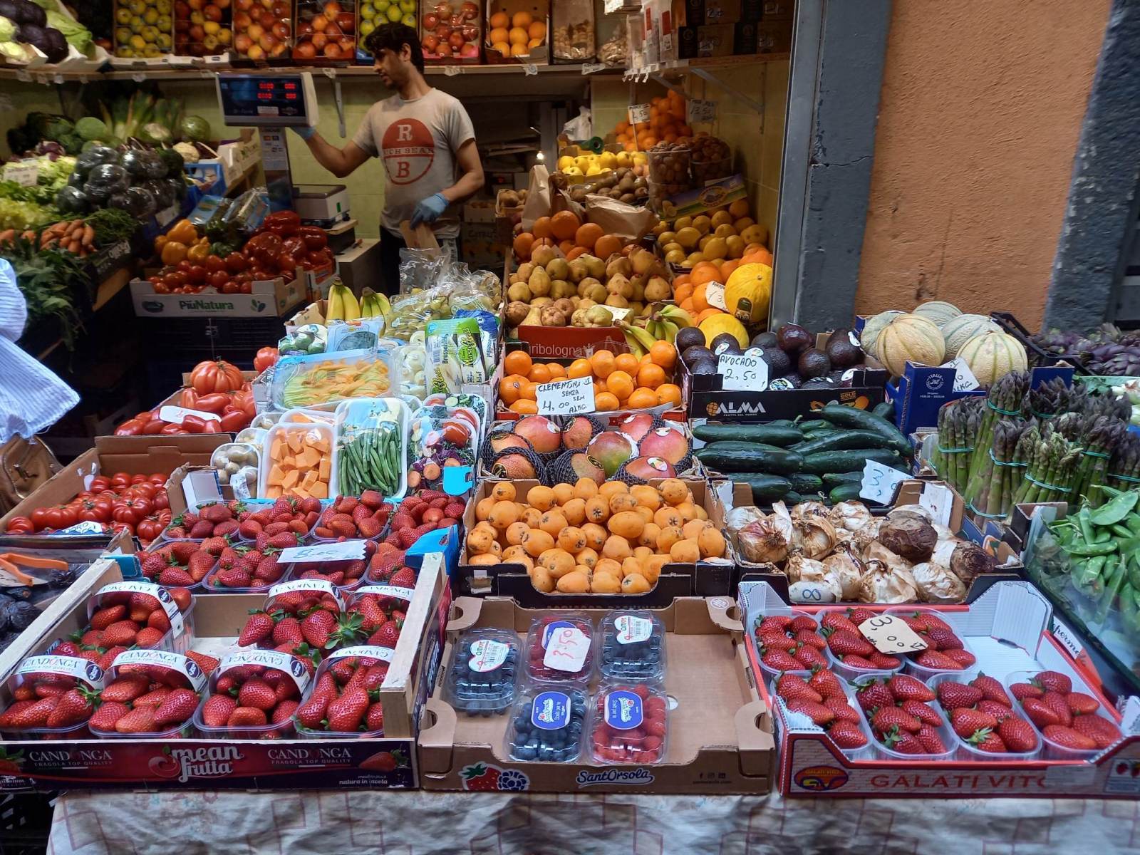 W sobotę po śniadaniu udaliśmy się spacerkiem na rynek, gdzie można było zakupić lokalne produkty: salami , różnego rodzaju sery ?, pyszne owoce ??, warzywa ? ? ? i… różności.