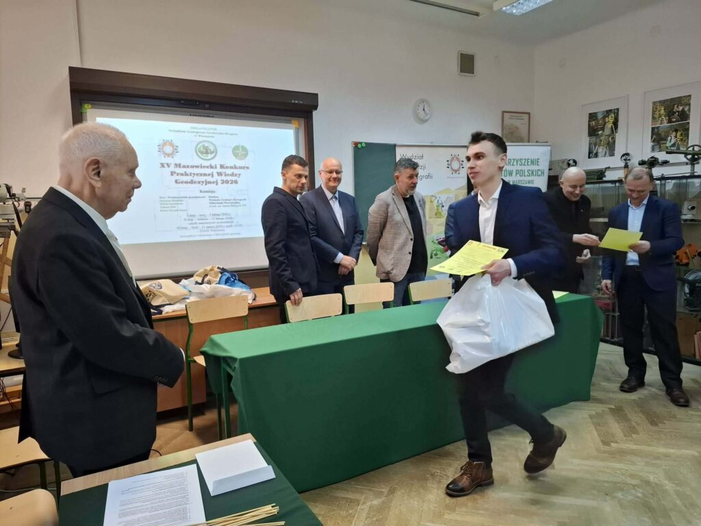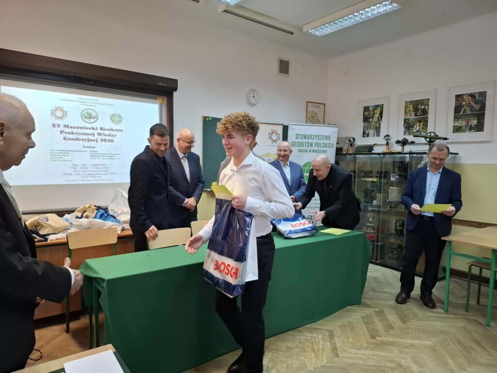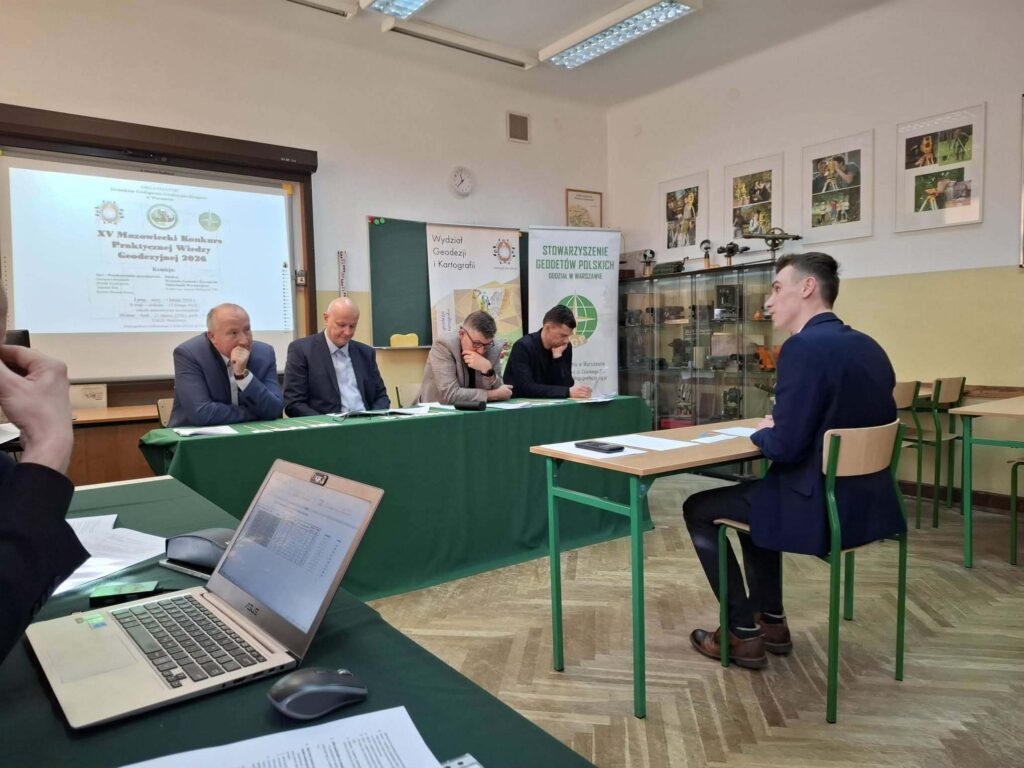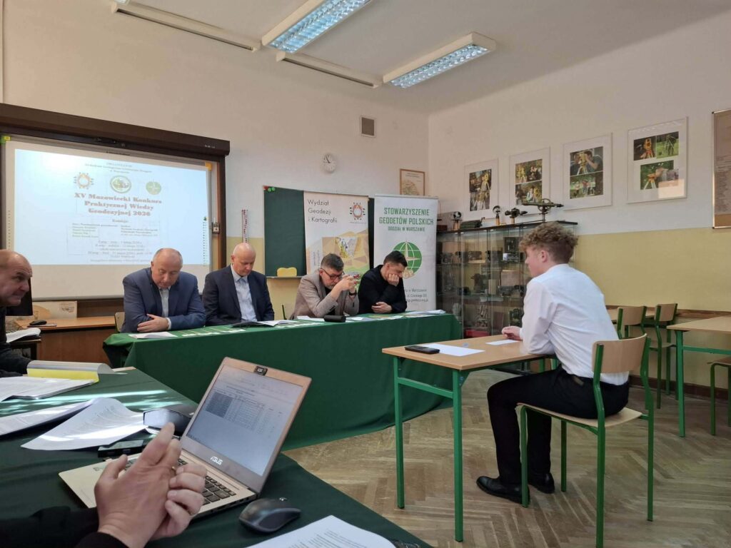 🏆 🗺️ 21 lutego 2026 r. odbył się finał XV Mazowieckiego Konkursu Praktycznej Wiedzy Geodezyjnej w siedzibie gospodarzy konkursu – w Warszawskim Technikum Geologiczno-Geodezyjno Drogowym, do którego zakwalifikowało się trzech uczniów naszego Technikum Geodezyjnego z klasy 5.