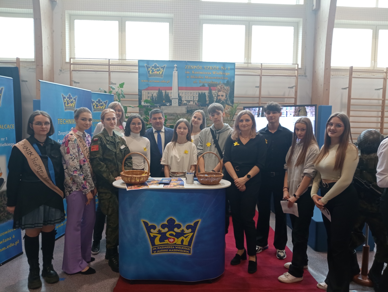 Giełda szkół ? ? pod patronatem Starosty Mińskiego Antoniego Jana Tarczyńskiego zakończona! Jeszcze raz dziękujemy za przybycie gościom ze szkół podstawowych, placówkom ponadpodstawowym z powiatu mińskiego, dyrektorom tychże placówek, staroście Antoniemu Janowi Tarczyńskiemu, wicestaroście Witoldowi Kikolskiemu i zastępczyni naczelnik wydziału oświaty i promocji powiatu mińskiego Urszuli Soroce.