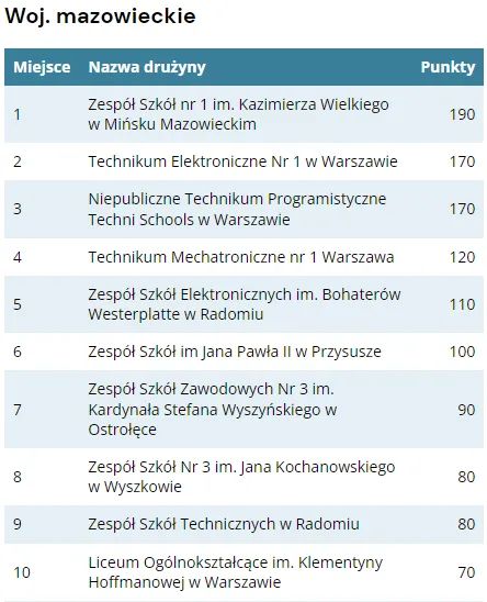 Wielkie gratulacje dla naszego zespołu (Kuba Łodyga – 2 PIN, Kacper Królak – 4 GIN, Kacper Szczęsny – 4 GIN), który awansował do finału z 1 miejsca w województwie mazowieckim (trzeci wynik w Polsce)!