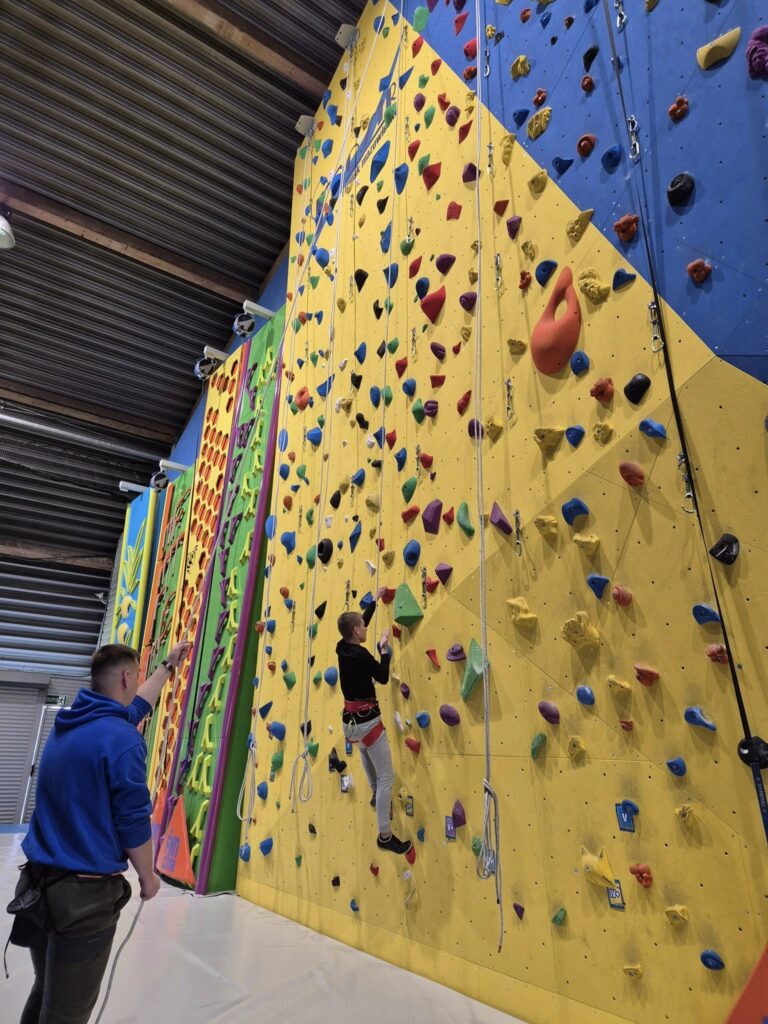 23 maja 2025 r. część klasy 1m/s wybrała się do Miejskiego Ośrodka Sportu i Rekreacji w Mińsku Mazowieckim na ściankę wspinaczkową. Po krótkiej rozgrzewce uczniowie otrzymali od instruktorów niezbędny sprzęt oraz odpowiedni instruktaż, po to by wspinanie od pierwszych chwil było bezpieczne.