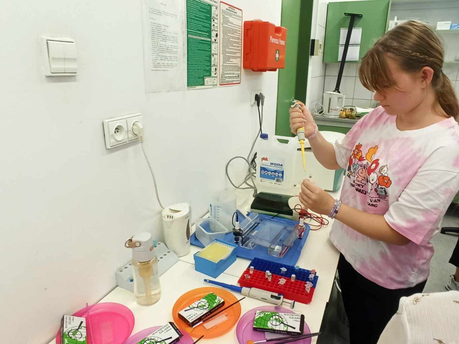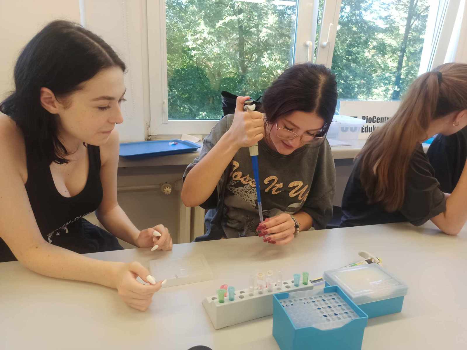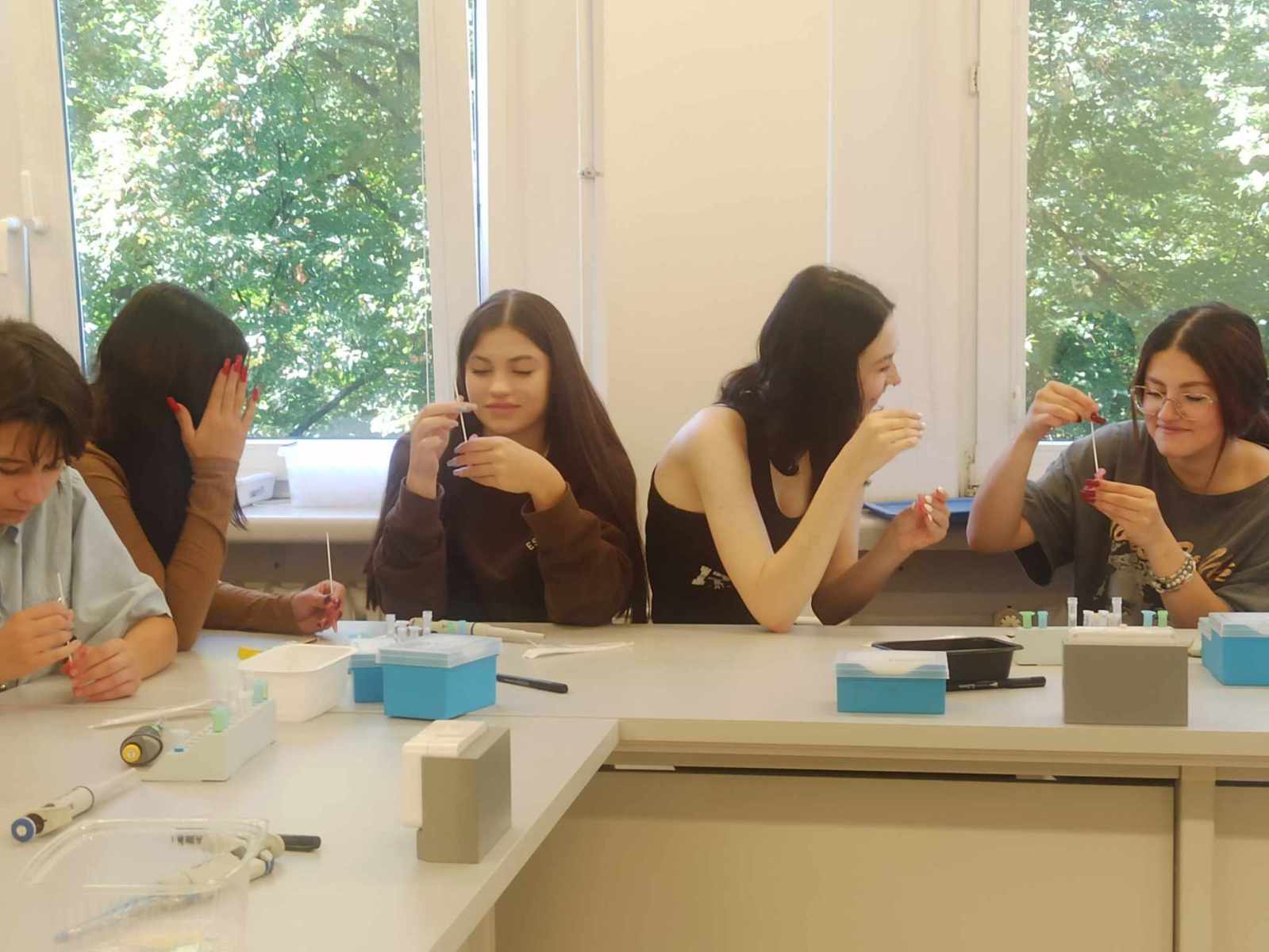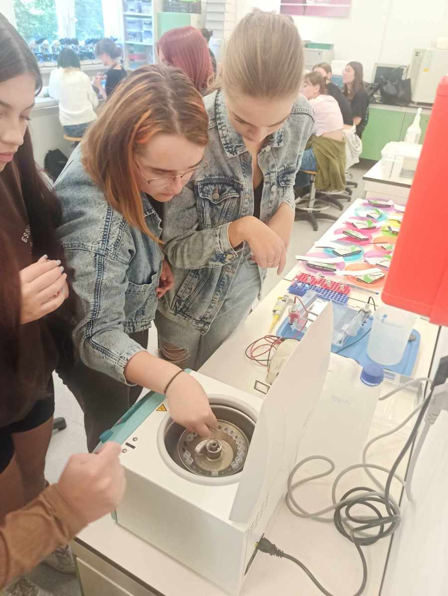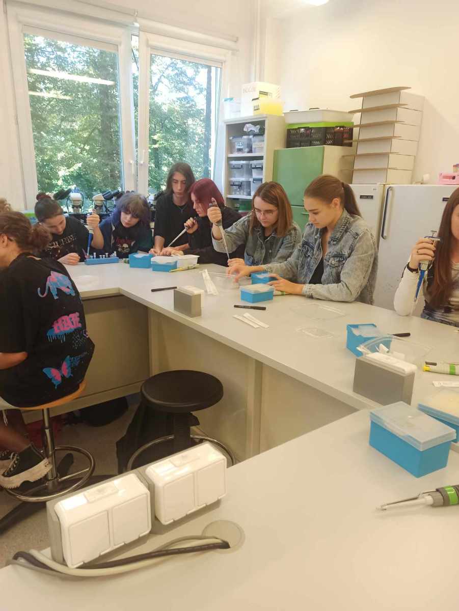Klasa 2 przemysłu mody i stylistów uczestniczy w zajęciach laboratoryjnych ? ? na Uniwersytecie Warszawskim. To już drugie takie spotkanie młodzieży z nauką. Tym razem uczniowie zaglądają do wnętrza komórki, aby zobaczyć DNA. Podczas wykładu pogłębiają i utrwalają swoją wiedzę na temat materiału genetycznego. Organizatorem zajęć jest BioCentrum Edukacji Naukowej.