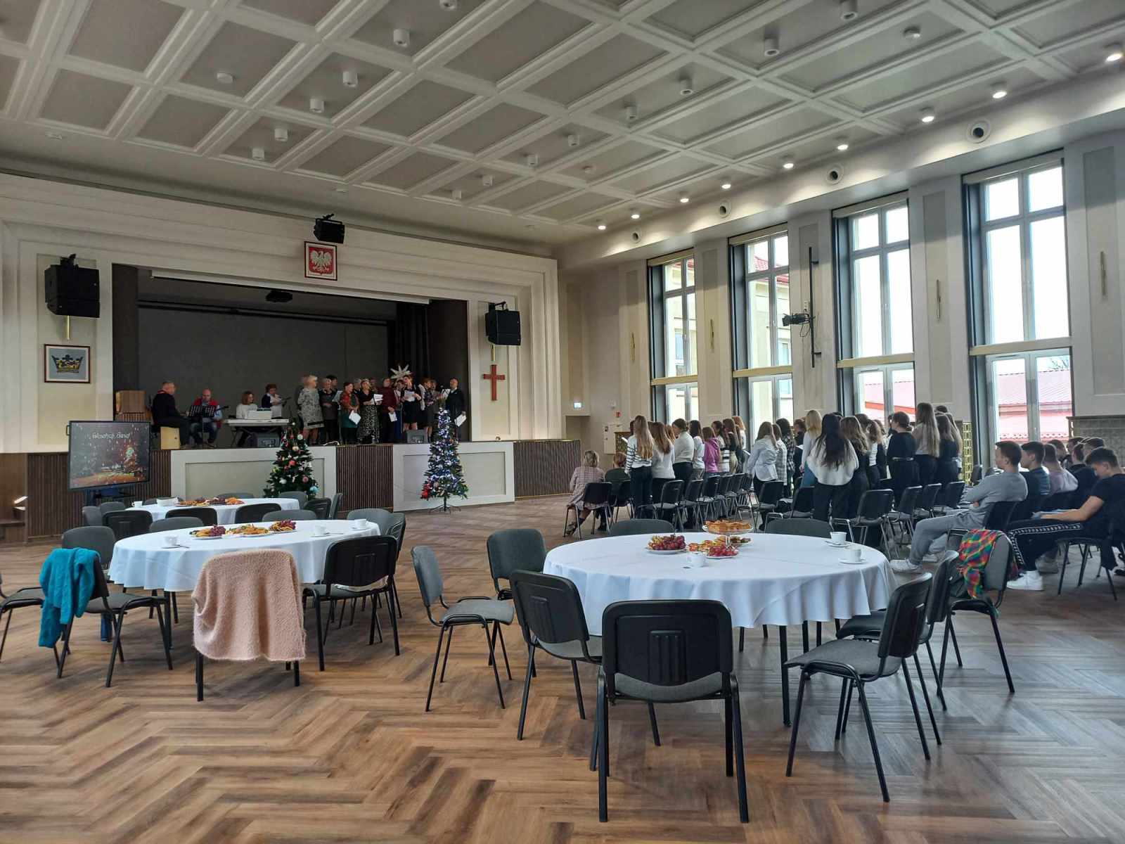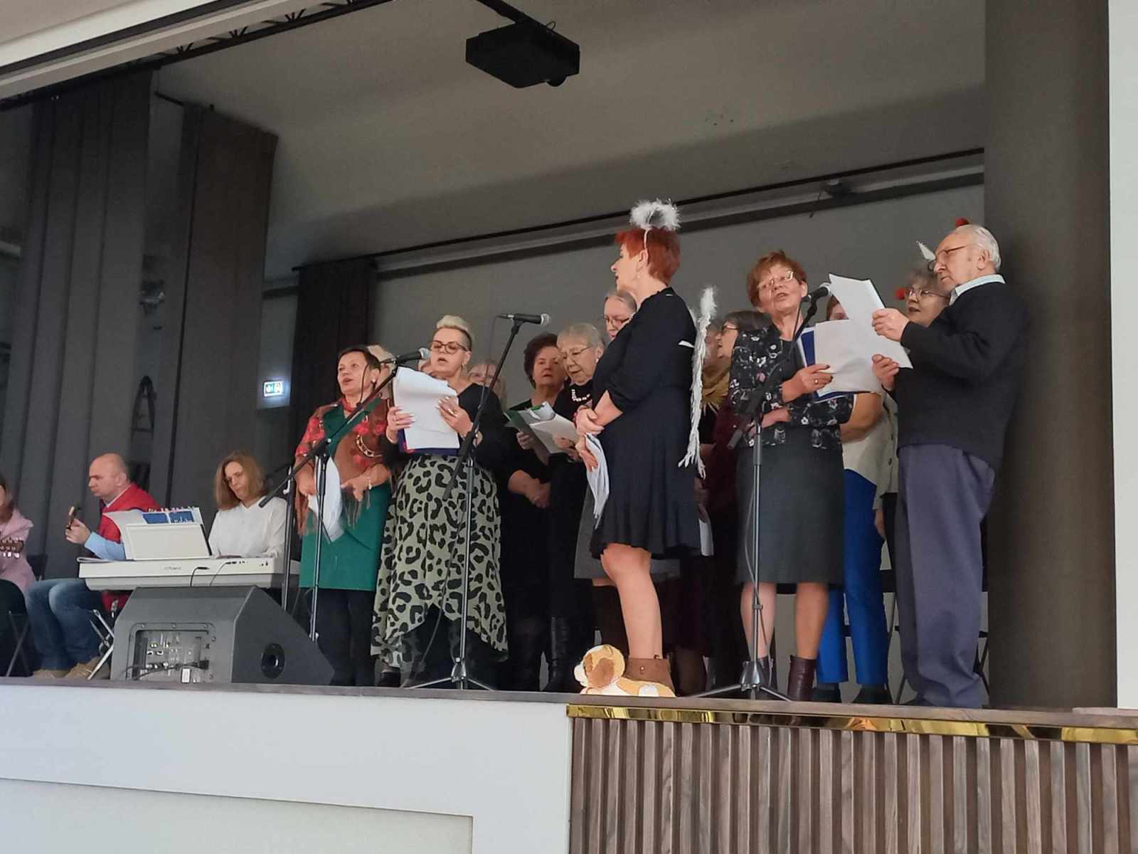 Udowodnili, że kryje się w nich potencjał artystyczno-wokalny, którego śmiało można im pozazdrościć. Przy wokalnym wsparciu grupy 50 wolontariuszy naszej szkoły, widzowie wysłuchali czternastu najpiękniejszych kolęd… Muzyka naprawdę łączy pokolenia, szczególnie, gdy śpiewa się sercem. Dziękujemy Seniorom, Dyrekcji, oraz, jak zwykle niezastąpionemu, Wolontariatowi ?