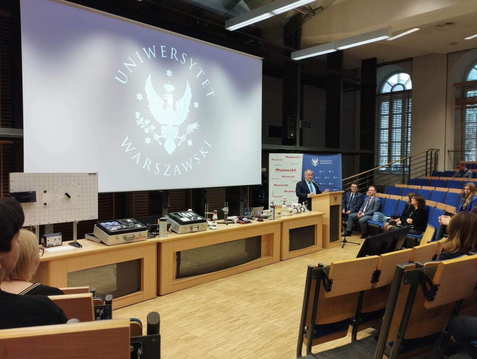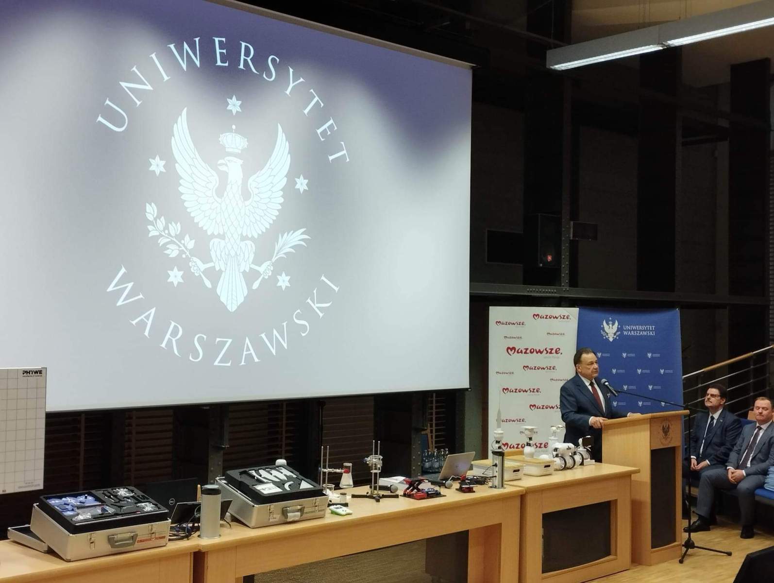 Dzisiaj odbyło się uroczyste zakończenie studiów podyplomowych dla dyrektorów i nauczycieli szkół z województwa mazowieckiego w ramach pilotażowego programu edukacyjnego „Mazowsze dla Oświaty” połączone z wręczeniem świadectw ukończenia studiów. Wydarzeniu przewodzili Jego Magnificencja prof. dr hab. Alojzy Z. Nowak – Rektor Uniwersytetu Warszawskiego oraz Adam Struzik – Marszałek Województwa Mazowieckiego.