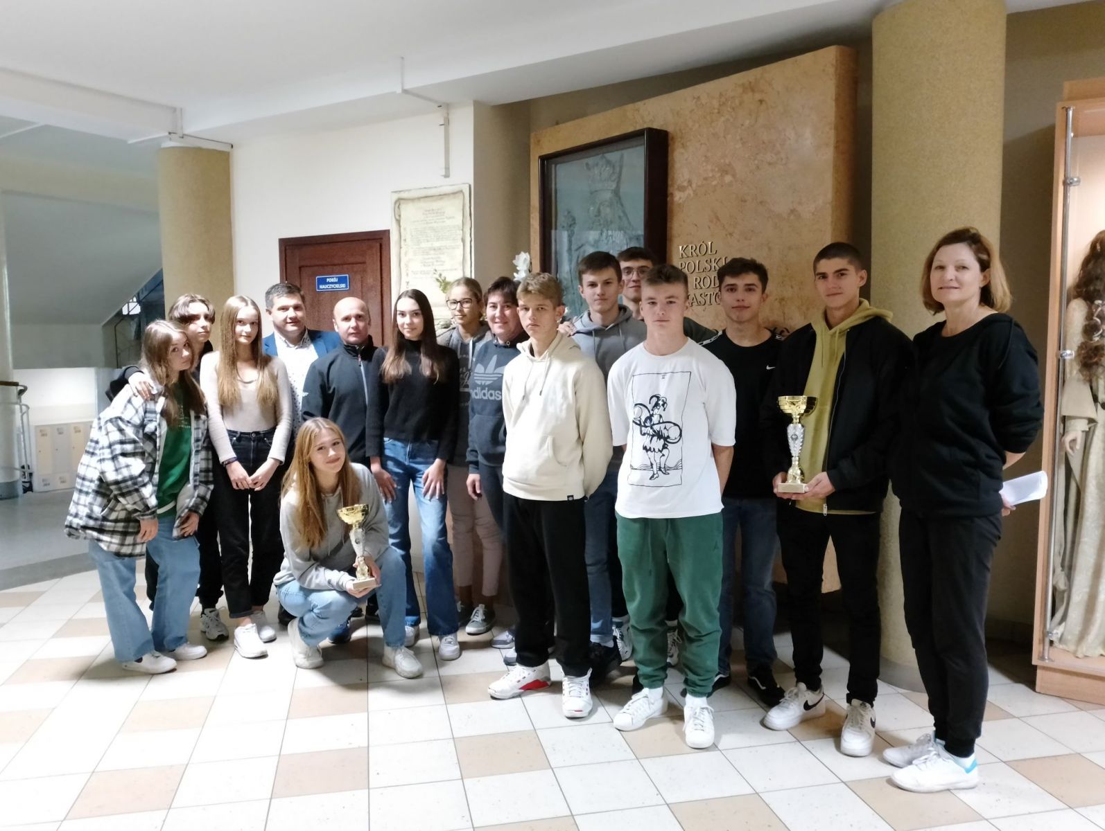 W środę 28 września odbyły się Mistrzostwa Powiatu w Sztafetowych Biegach Przełajowych. Naszą szkołę reprezentowały dwie drużyny – dziewczynek i chłopców, które wywalczyły I miejsce. Drużynę żeńską reprezentowały: Julia Zwierz (1OPW) Aleksandra Sokołowska (4PTU) Zuzanna Niemyjska (3PPR) Agata Kwiatkowska (1PRB) Monika Kędzierska (4OPW) Julia Niedziałek (2PC) Anna Syryjczyk (1PRB) Zofia Szubert (2OPW) Alicja Biernat (1OPW) Anna Szylberg (1OPW) Drużynę męską reprezentowali: Szymon Świętochowski (3OPW) Bartłomiej Mroszczyk (2OPW) Patryk Matejak (3OPW) Eryk Wójcik (4GCH) Eryk Matasek (3OPW) Kacper Wocial (1TBU) Filip Gruba (3OPW) Jarosław Uściński (2Brw) Bartosz Sekular (3OPW). Na wyróżnienie zasługują także Emilia Popis, Alicja Mirosz, Karol Kopeć i Karol Lewicki, którzy mocno wspierali i pomagali w sędziowaniu. Wszyscy zawodnicy wykazali się ogromną wytrzymałością i walką do samego końca! Gratulujemy zwycięstwa i życzymy dalszych sukcesów w nadchodzących zawodach regionalnych.