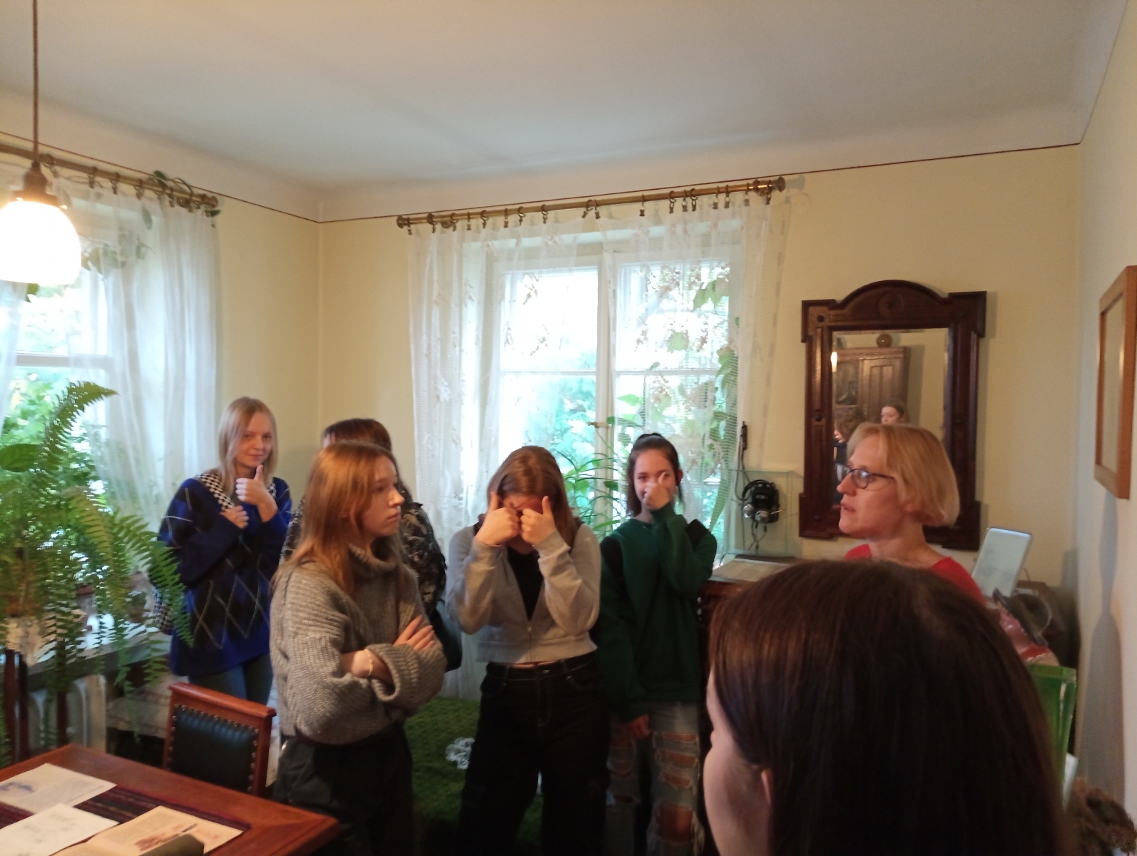 A tuż po spektaklu „Wspomnienia narkomanki”, niektóre z klas postanowiły wykorzystać ten dzień na dalszą naukę, ale w terenie. I tak np. uczniowie klasy I pedagogicznej wraz z wychowawcą wybrali się na edukacyjny spacer po Mińsku Mazowieckim. Trafili m. in. do Muzeum Ziemi Mińskiej, w którym można posłuchać o zasłużonych postaciach naszych ziem, obejrzeć prace artystów pochodzących z Mińska i okolic, a także przyjrzeć się temu, w jaki sposób funkcjonowali tutejsi nauczyciele 100 lat temu. Szczególne pozdrowienia i podziękowania należą się przewodnikom, których pasja nie pozwala na nudę oraz wzbudza zainteresowanie zwiedzających.