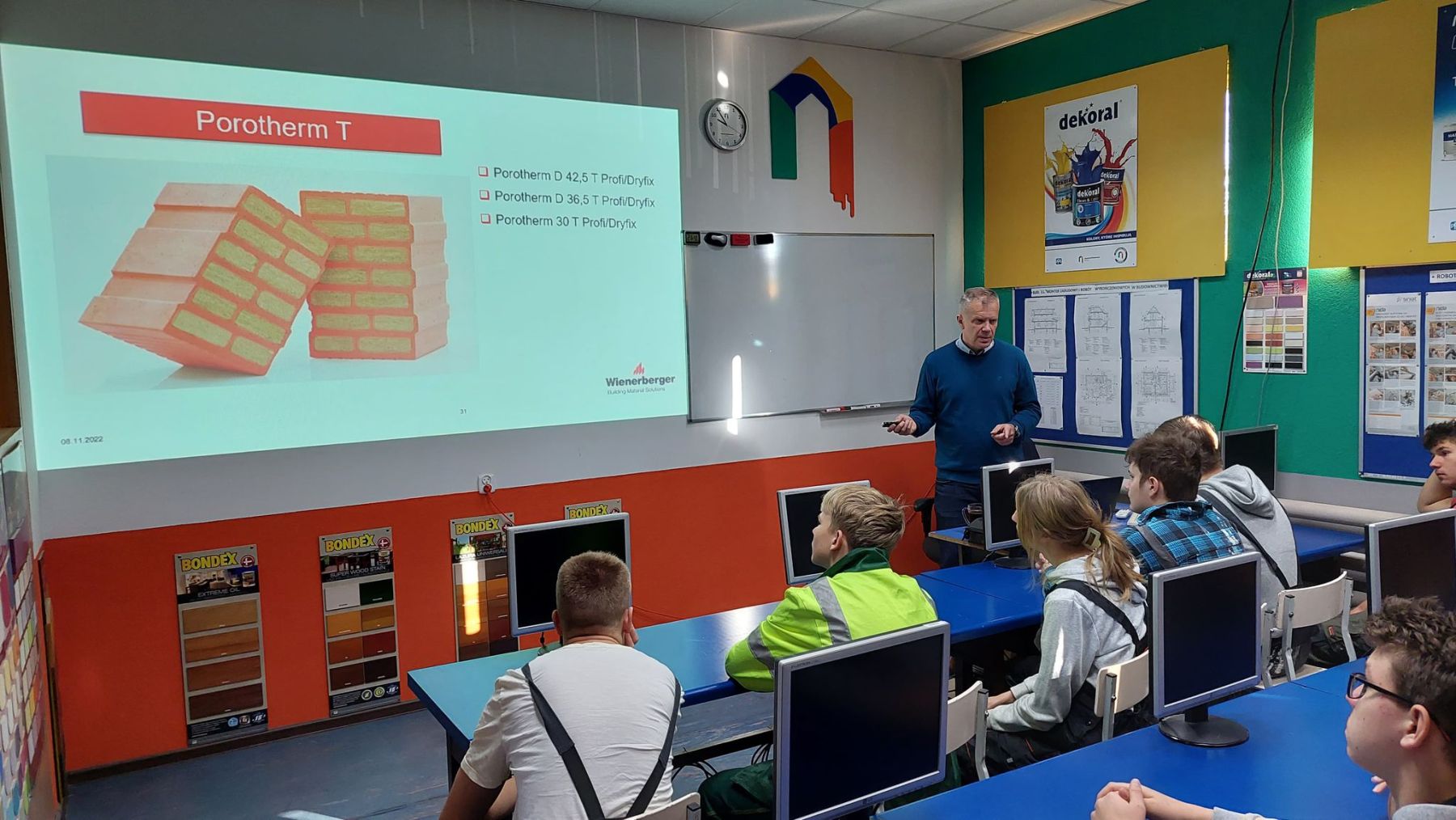 8 listopada 2022 r. w Centrum szkolenia Zawodowego i Ustawicznego w Mińsku Mazowieckim odbyło się szkolenie i prezentacja „Nowoczesne technologie ceramiczne dla architektury i budownictwa systemu ceramicznego Porotherm”. Pokaz murowania w systemie Porotherm Dryfix i murowanie na zaprawie cienkowarstwowej Porotherm Profi zostało przeprowadzone przez firmę Wienerberger dla uczniów klasy II technik budownictwa w zawodzie murarz tynkarz.