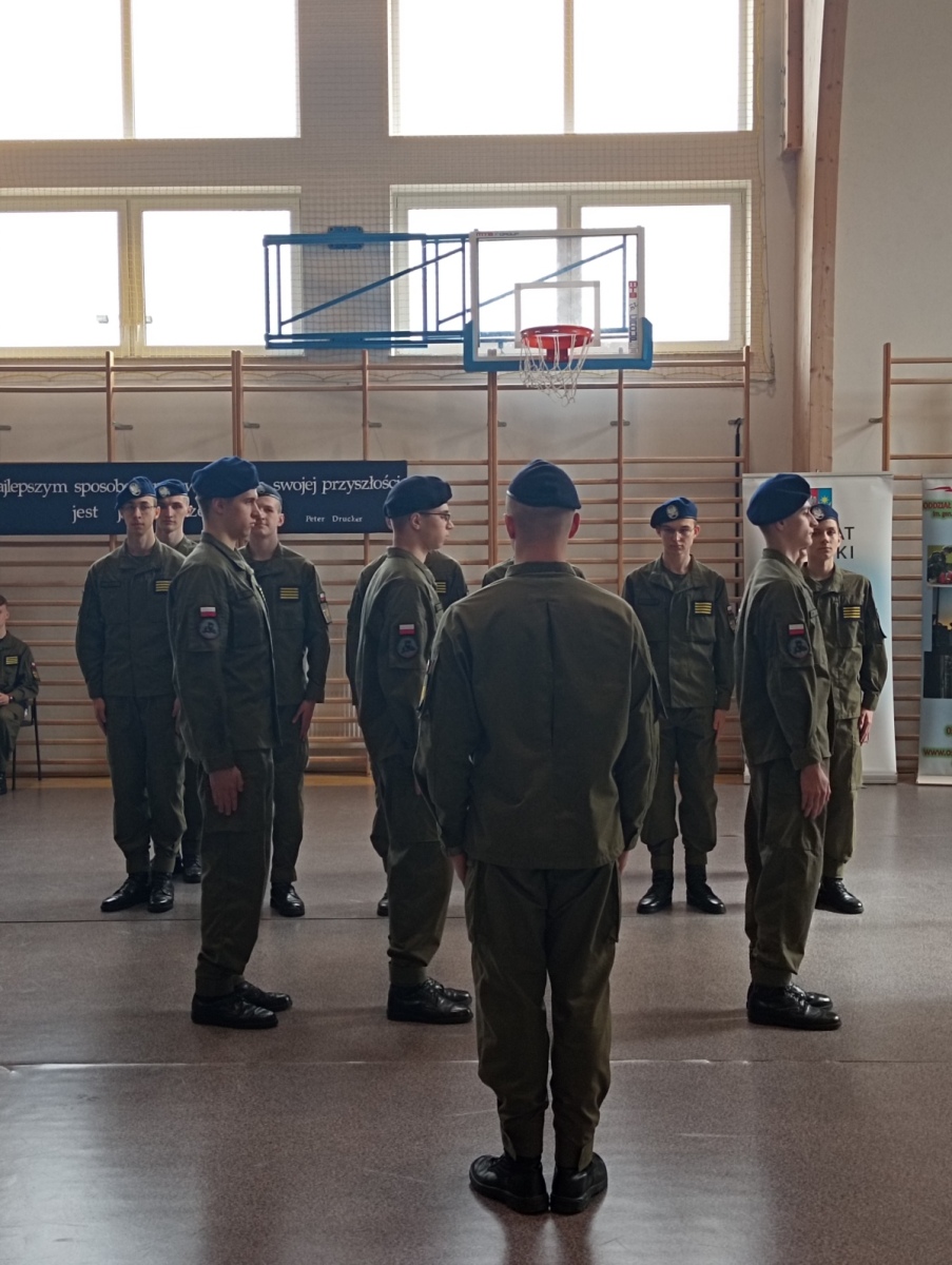 rozpoczęła się ceremoniałem wojskowym i meldunkiem złożonym dyrektorowi przez kadeta Grzegorza Szostaka.