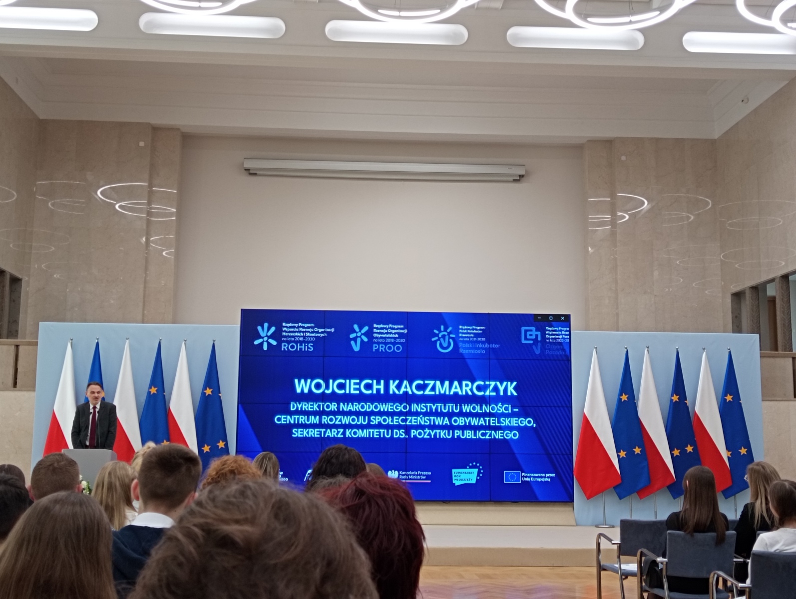 Konferencja odbywa się w Kancelarii Prezesa Rady Ministrów. Uczymy się, m. in, o tym, jak korzystać ze środków funduszów młodzieżowych oraz jak radzić sobie ze stresem i hejtem ?