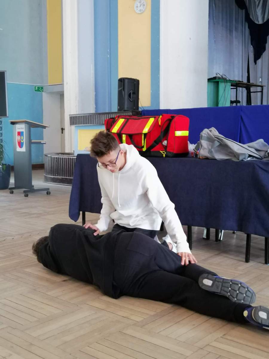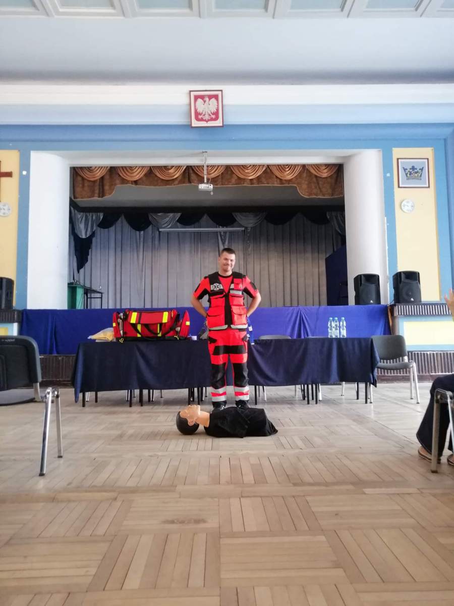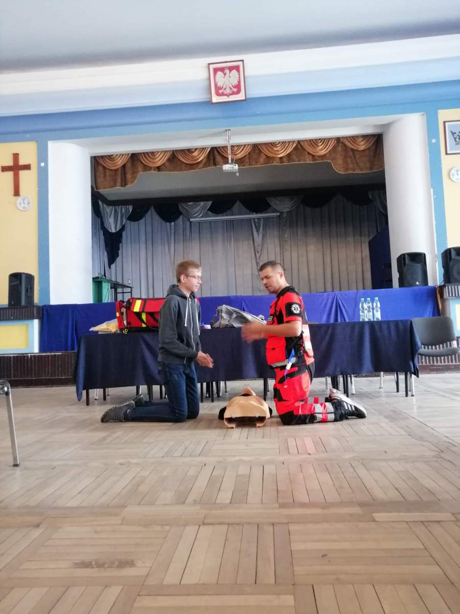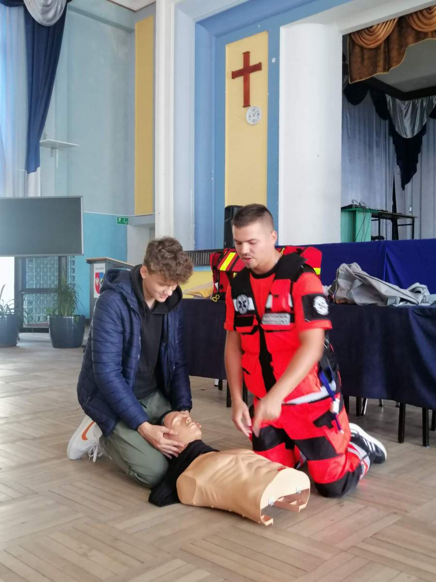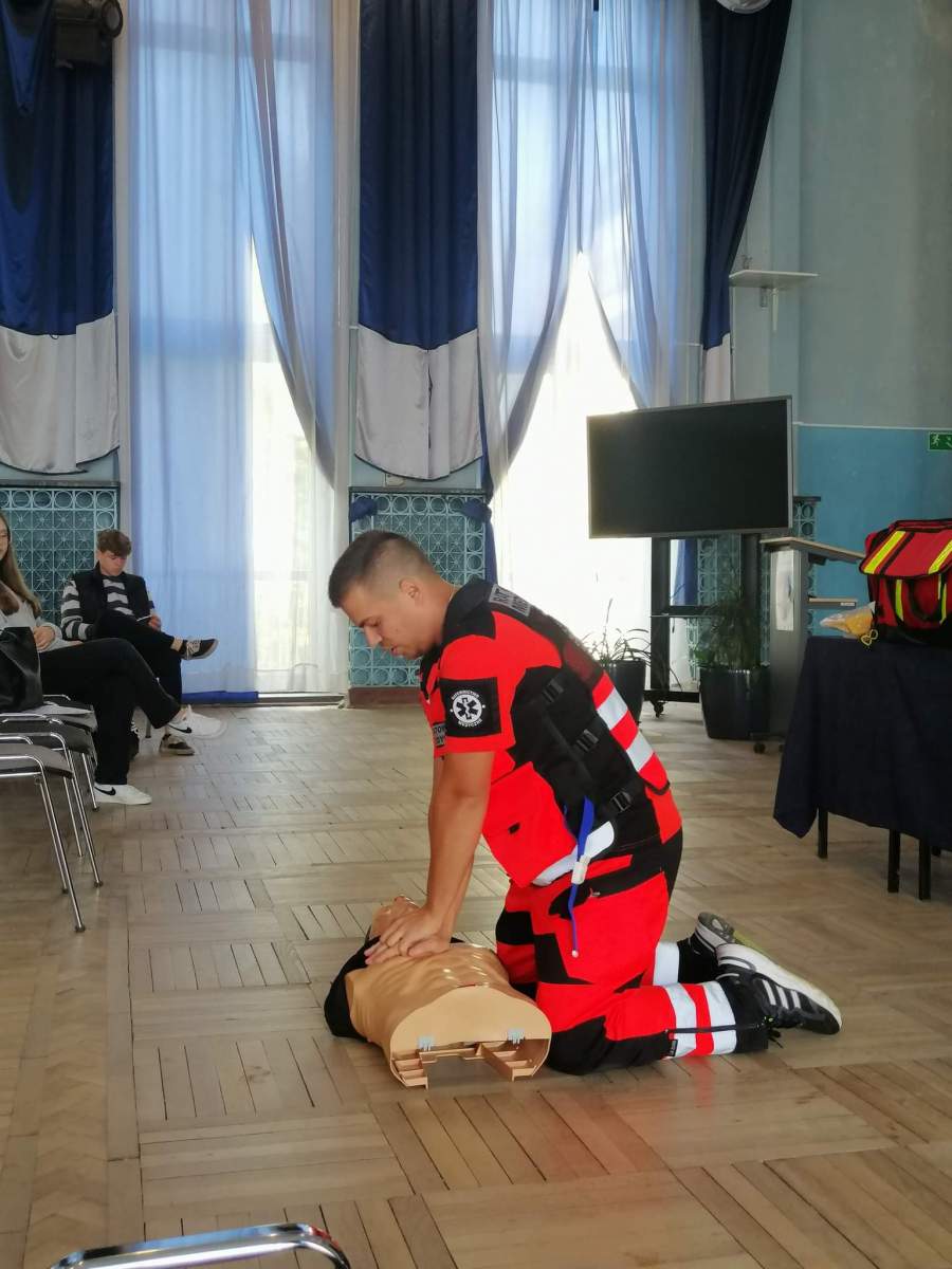 27.09 w naszej szkole odbyły się warsztaty nt. „Pierwszej Pomocy”. O tym, jak radzić sobie w trudnych momentach, nie tracić głowy i pomagać, a nie szkodzić, opowiedział Michał Brudz, student Ratownictwa Medycznego UPH w Siedlcach. Nad sprawnym przebiegiem wydarzenia oraz uczestnikami (a to aż 22 klasy!) czuwały organizatorki – Panie Monika Pszonka i Monika Skrzydlewska, a także Szkolne Koło Wolontariatu.