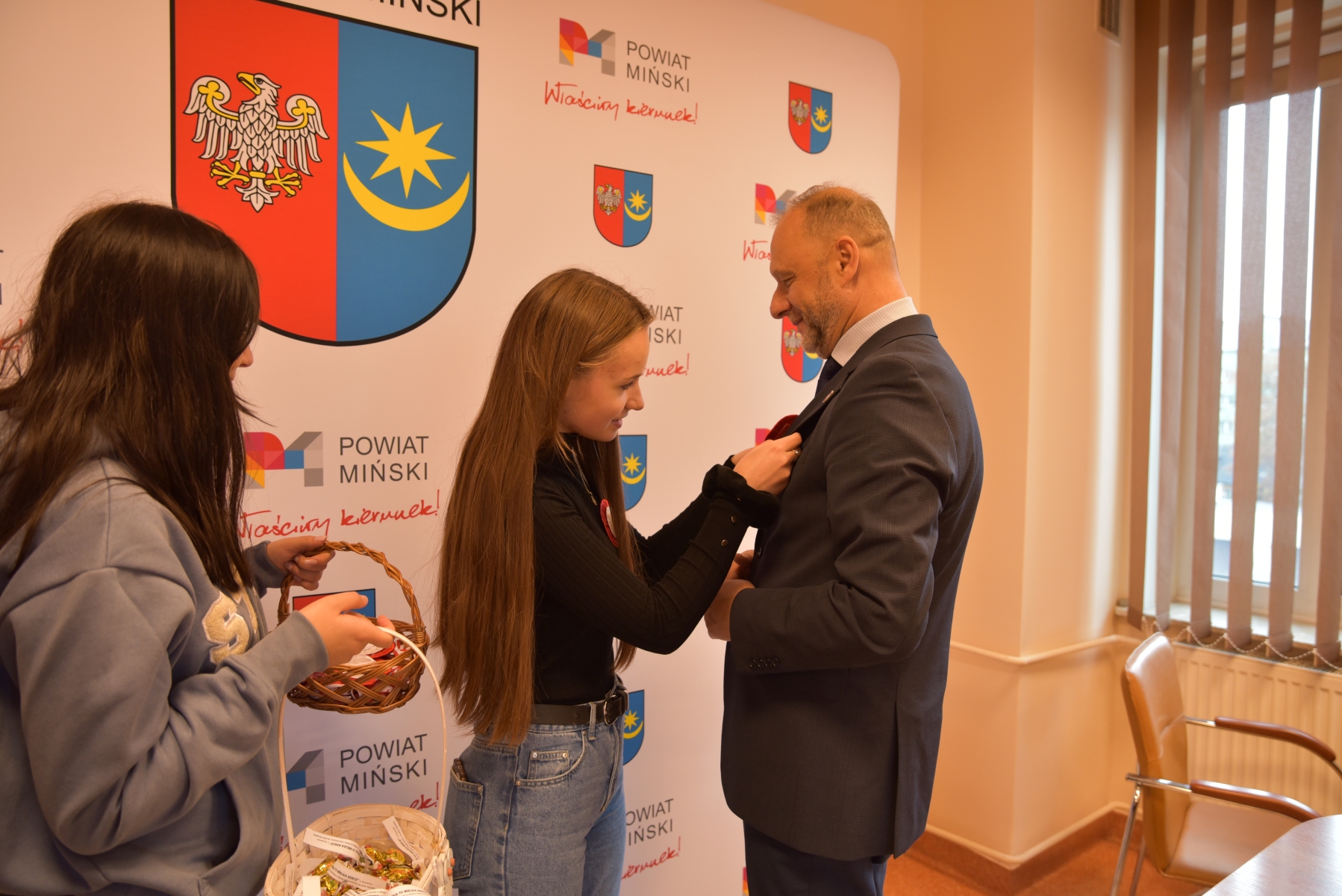 Z okazji Narodowego Święta Niepodległości klasy 2 PPR oraz 4 PPR obdarowały mieszkańców powiatu mińskiego własnoręcznie wykonanymi kotylionami w barwach biało-czerwonych, wręczając także słodki upominek z cytatem z „Wesela” Stanisława Wyspiańskiego: „Polska to jest wielka rzecz”. Wydarzenie miało miejsce przed budynkiem Starostwa Powiatowego w Mińsku Mazowieckim, a wśród obdarowanych znaleźli się, m. in., starosta miński Antoni Jan Tarczyński i wicestarosta Witold Kikolski. Uczniom Zespołu Szkół towarzyszył dyrektor Adam Trześkowski. Świetnego pomysłu gratulujemy klasom, ale także zaangażowanym w przygotowanie hapenningu nauczycielkom: Anecie Martyniak, Annie Smater-Nagrabie i Joannie Bystrzyńskiej.