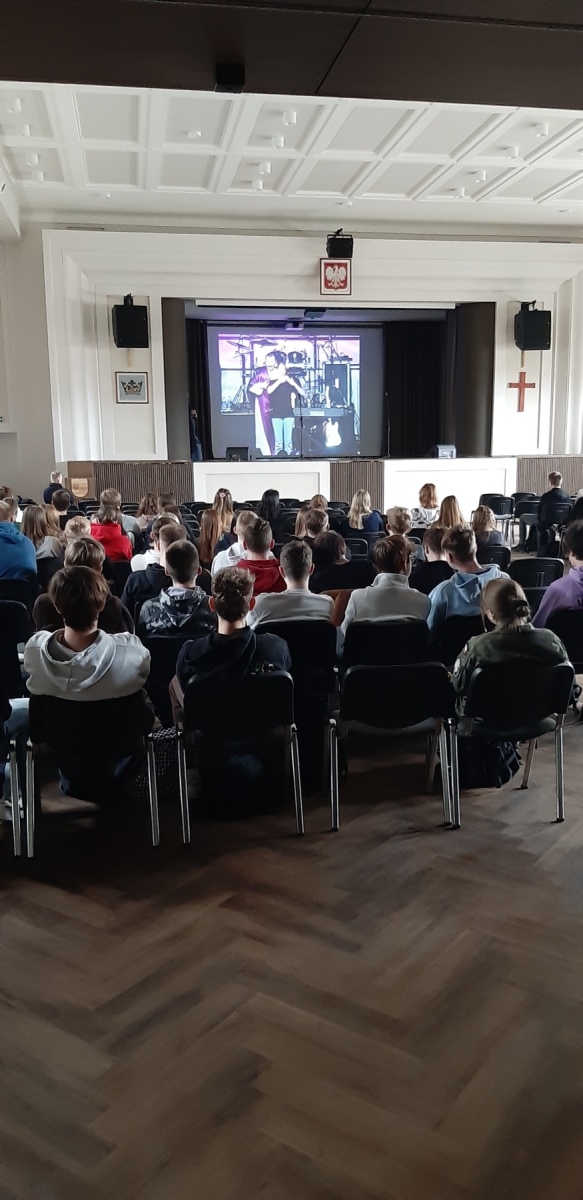 W ramach rekolekcji uczniowie mieli okazję zobaczyć film – pantomimę amerykańskiego zespołu ewangelizacyjnego oraz wysłuchać świadectwa młodego programisty należącego do jednej ze wspólnot charyzmatycznych w Mińsku Mazowieckim.
