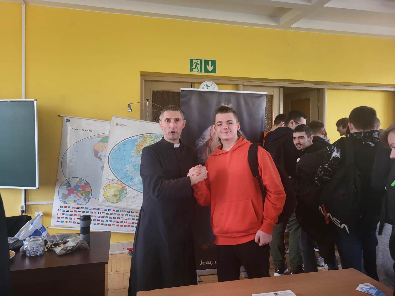 23.03 uczniowie mieli możliwość posłuchania nauki ksiedza rekolekcjonisty Adama Anuszkiewicza ⛪ ✝️ Było to niepowtarzalne wydarzenie, ponieważ Ksiądz jest znanym raperem (czego nie omieszkał udowodnić), oraz szanowanym egzorcystą. Nie przybył sam, ale w towarzystwie prawdziwych świętych, których szczegolnie dzis można stawiać za wzor dla młodzieży, tj. bł. Karoliny Kozkówny i bł . Carlo Acutisa.