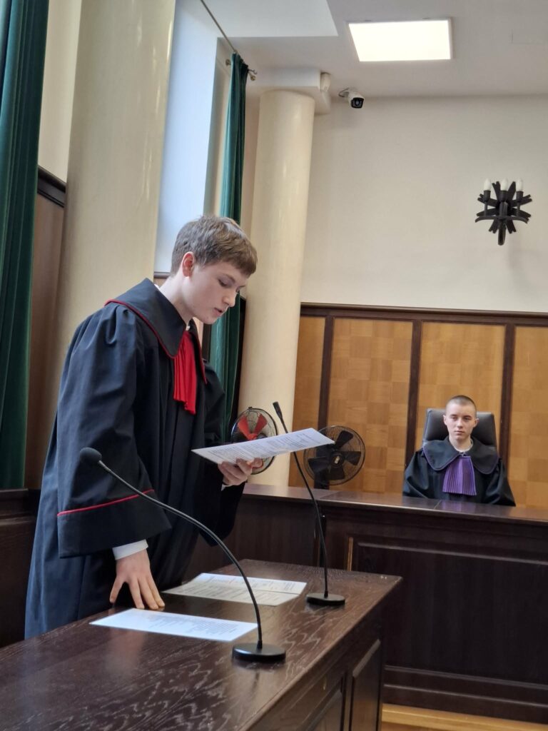 pionu karnego, którego celem jest umożliwienie młodzieży zdobycia wiedzy z zakresu prawa oraz zasad funkcjonowaniem wymiaru sprawiedliwości. Podczas spotkania uczniowie mieli okazję poszerzyć swoją wiedzę prawną, a także aktywnie uczestniczyć w symulacji rozprawy sądowej, wcielając się w role stron postępowania ![]()