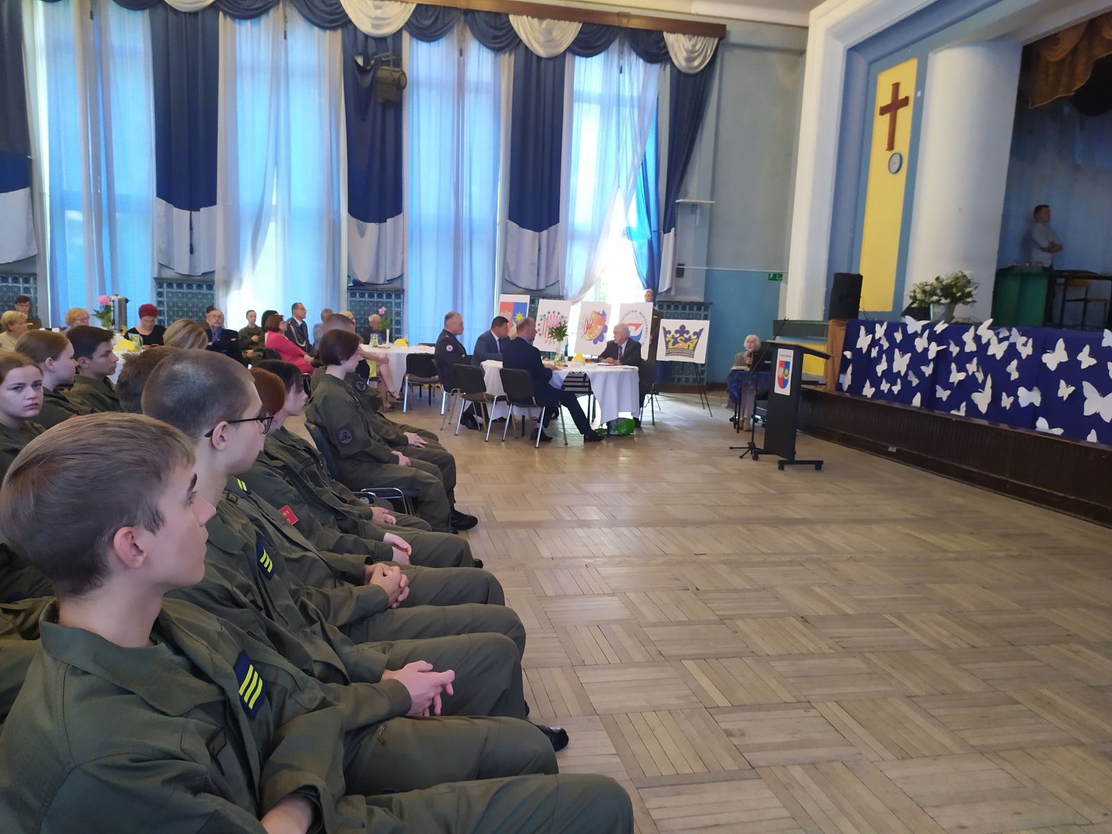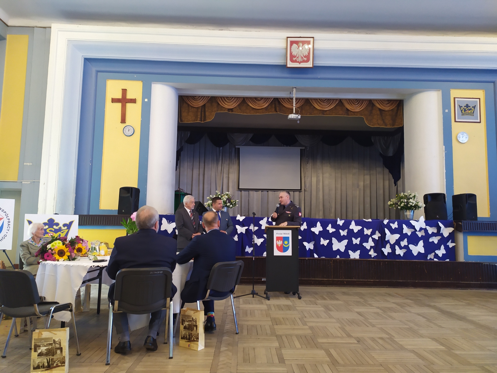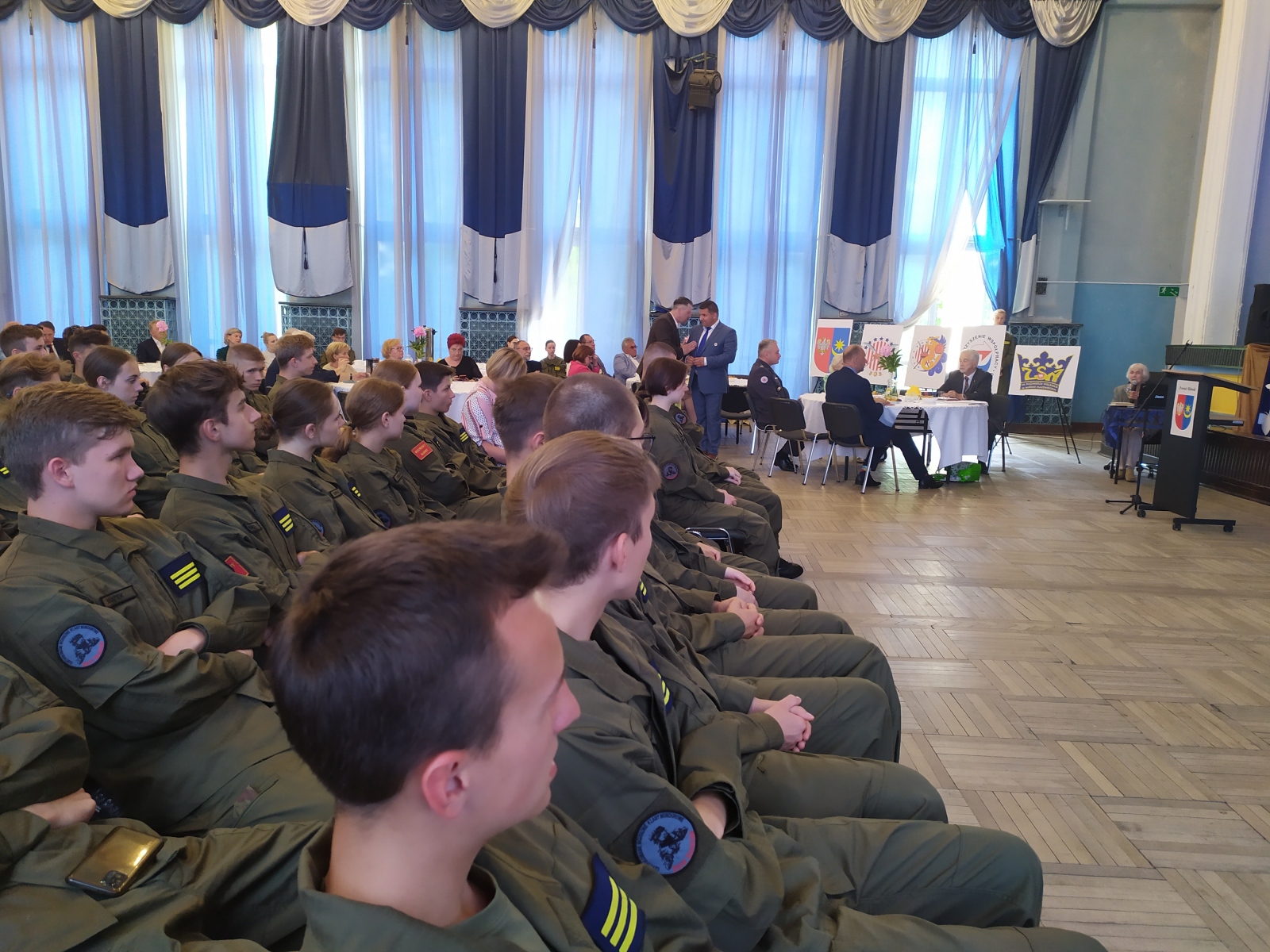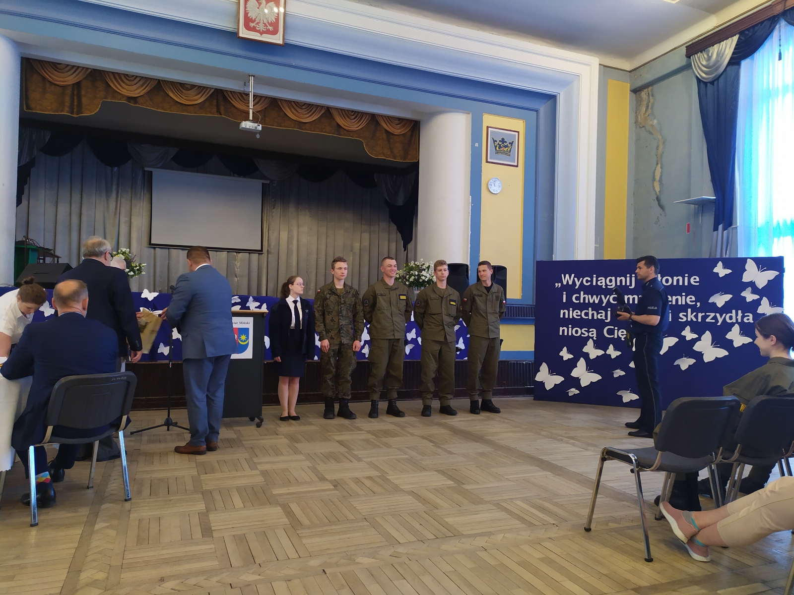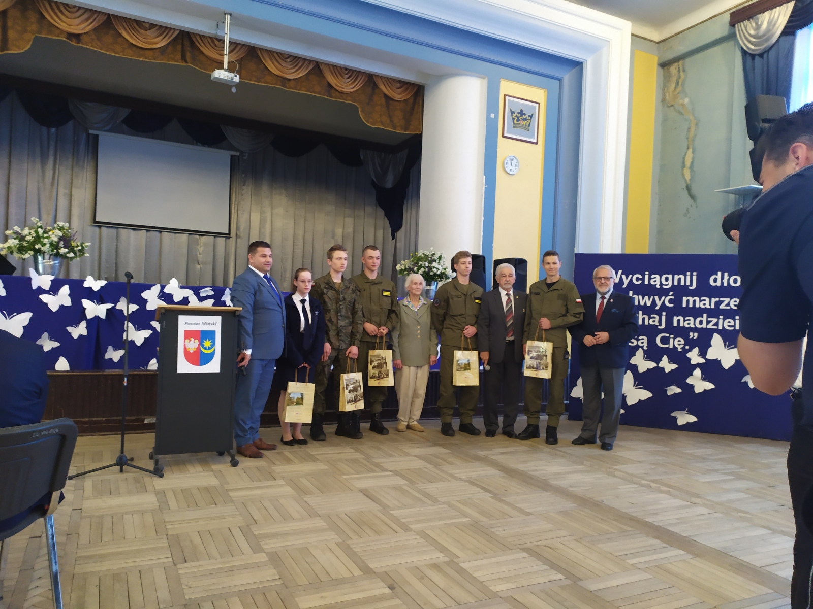 W spotkaniu poza zaproszonymi znamienitymi gośćmi uczestniczyli uczniowie klas mundurowych ze szkół w Mrozach, Dębem Wielkim oraz oczywiście nasze trzy klasy Zespołu Szkół nr 1. Młodzież i zaproszeni goście mieli okazję wysłuchać niezwykle ciekawej, bogato zilustrowanej zdjęciami historii o losach pilota Witolda Łokuciewskiego, którą przedstawiła jego siostrzenica Pani Bożena Łokuciewska-Gostkowska, autorka książki „TOLO. Muszkieter z Dywizjonu 303 – wspomnienia o Witoldzie Łokuciewskim”. A żeby historia mogła się utrwalić przedstawiciel każdej z klas wojskowych otrzymał egzemplarz tego wydawnictwa.