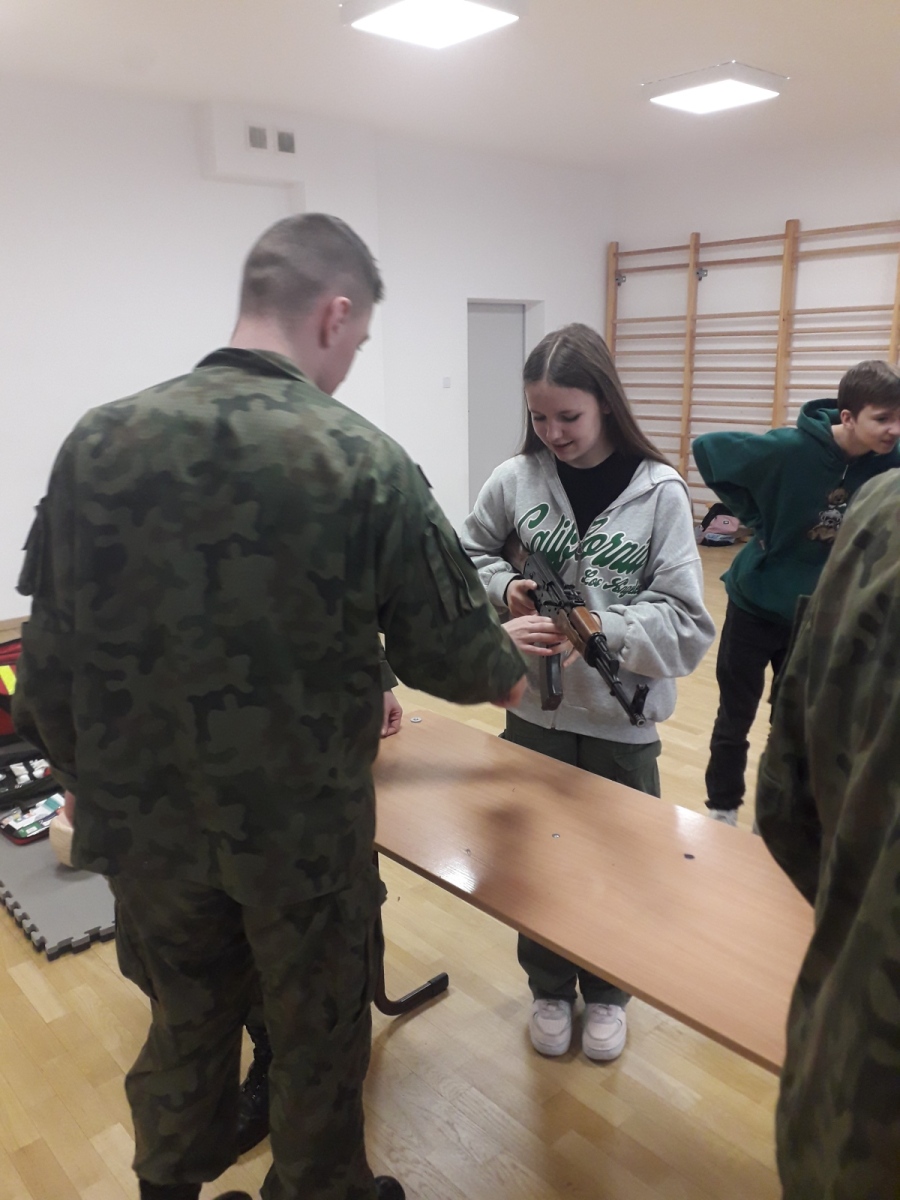Spotkanie z ósmoklasistami 10 lutego 2023 10 lutego gościliśmy uczniów ze SP 3 w Mińsku Mazowieckim, którzy zostali zapoznani przez naszych kadetów z tajnikami bycia uczniem klasy wojskowej. Oprócz uczestnictwa w zajęciach, ósmoklasiści poznali ofertę edukacyjną naszej szkoły. Pokaz slajdów