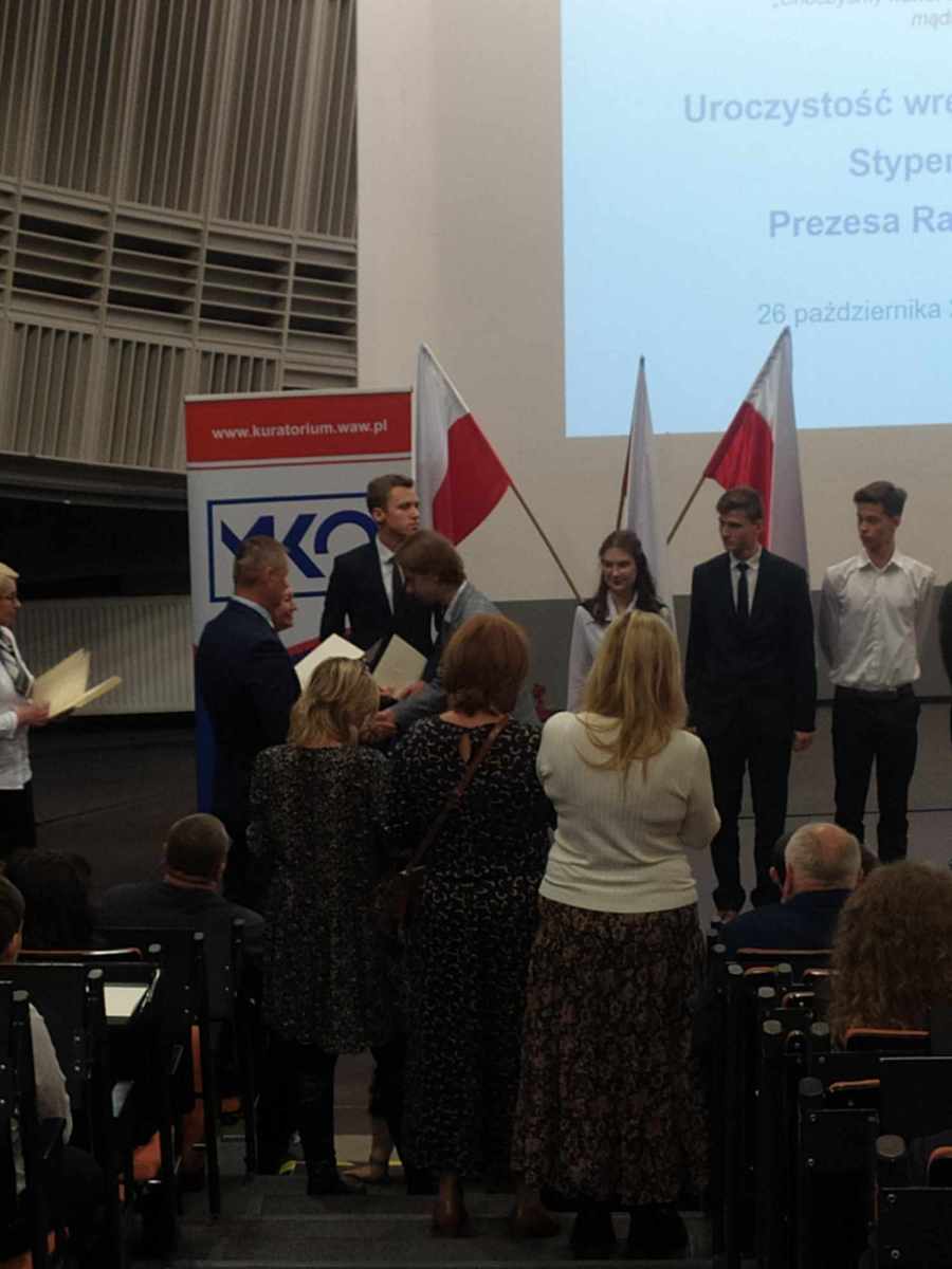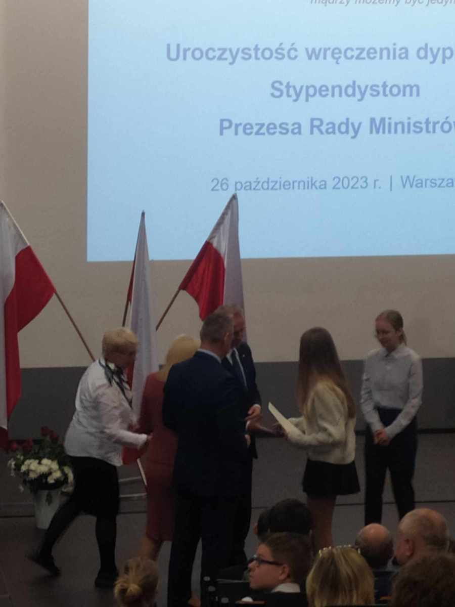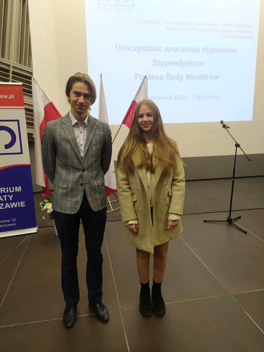 26.10.2023 nasi uczniowie – Zuzanna Bartnicka z klasy 3 PC Liceum Ogólnokształcącego oraz Adrian Piotrowski z klasy 4 technikum informatycznego odebrali stypendia Prezesa Rady Ministrów dla najlepszych uczniów w danym typie szkoły. ?