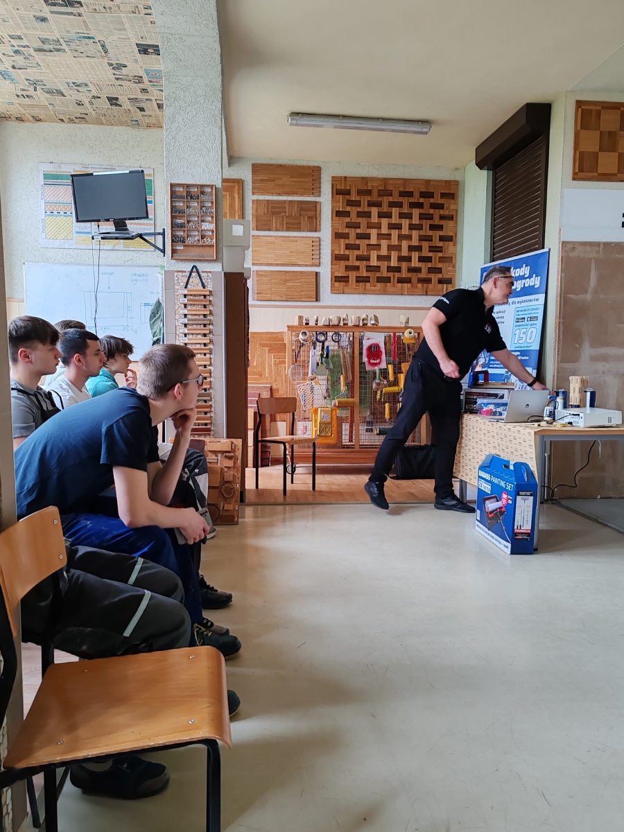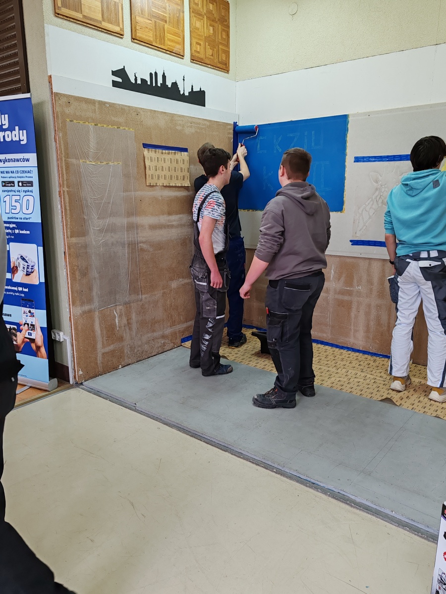 9 lutego 2024 r. odbyło się szkolenie dla uczniów klasy III PT w zawodzie monter zabudowy i robót wykończeniowych w budownictwie, zorganizowane przez firmę Blue Dolphin. Podczas tego spotkania uczniowie mieli okazję zapoznać się z najnowszymi rozwiązaniami w dziedzinie malowania, obejmującymi różnorodne narzędzia i techniki.