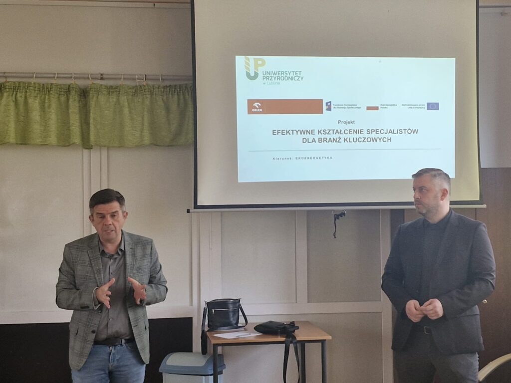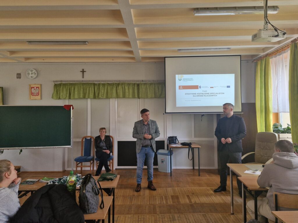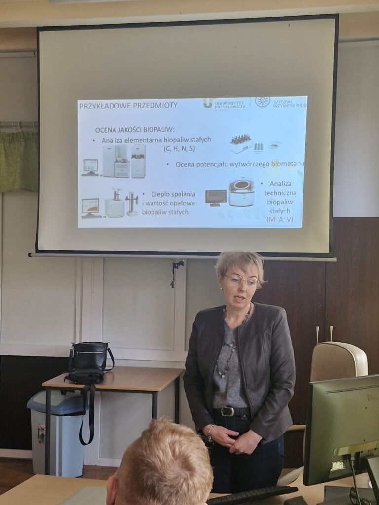 ℹ️ Na początku pani profesor przedstawiła założenia i program studiów na Wydziale Inżynierii Produkcji na Uniwersytecie Przyrodniczym w Lublinie. Na koniec serdecznie zaprosiła nasza młodzież do studiowania przekazując im w prezencie drobne pamiątki. Następnie panowie Darek i Paweł, zanim opowiedzieli o efektywnym kształceniu specjalistów dla branż kluczowych, zapowiedzieli konkurs z nagrodami. No i opłacało się pilnie słuchać. Nie dość, że uczniowie dowiedzieli się wielu ciekawych rzeczy, to 3 z nich wygrało konkurs. A byli to : Antek Araszkiewicz, Kuba Przepiórkowski i Arek Kania. Przebieg spotkania nadzorowała kierownik Kształcenia Praktycznego – pani Anna Szostek.