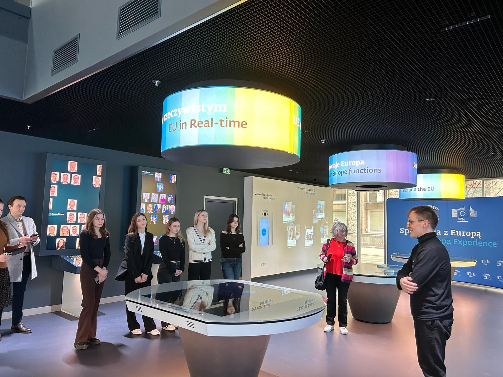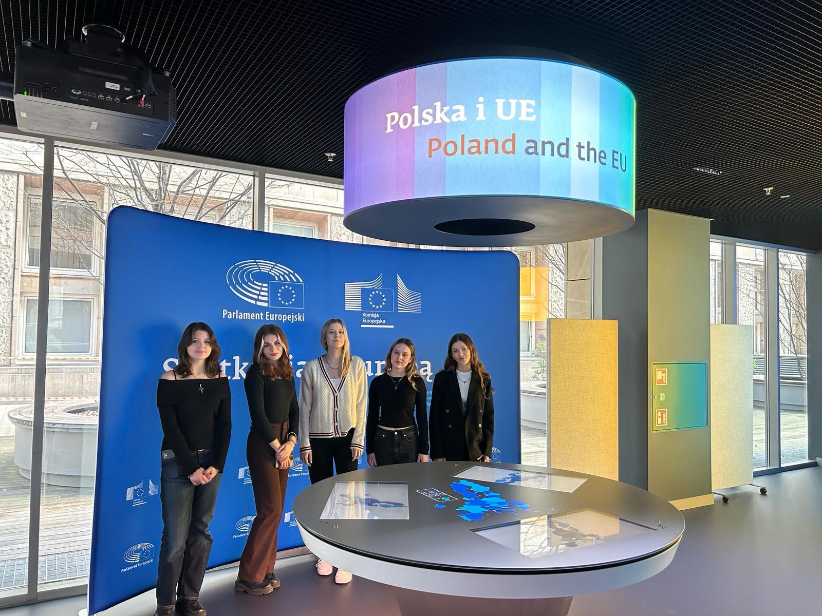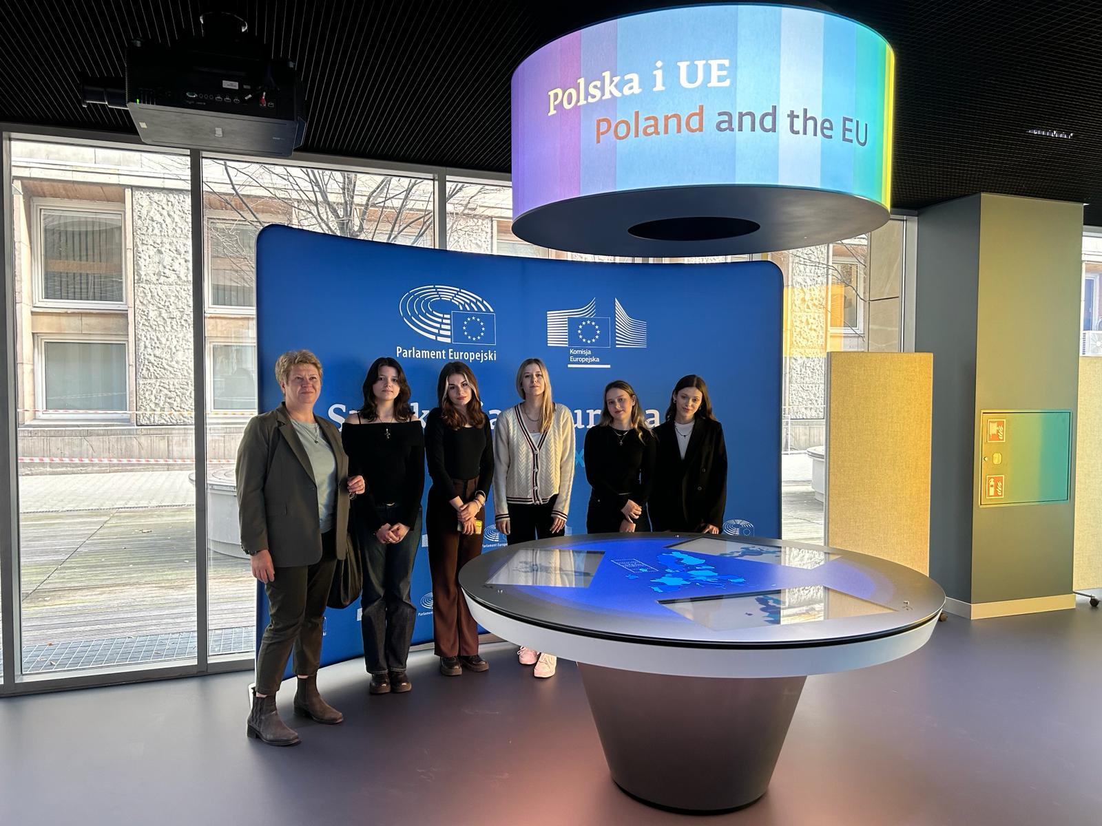Na początek zwiedziły centrum Europa Experience w Biurze Parlamentu Europejskiego w Warszawie. Kolejnym punktem były zajęcia warsztatowe prowadzone przez dra Mateusza Koniecznego – uczennice poznały
