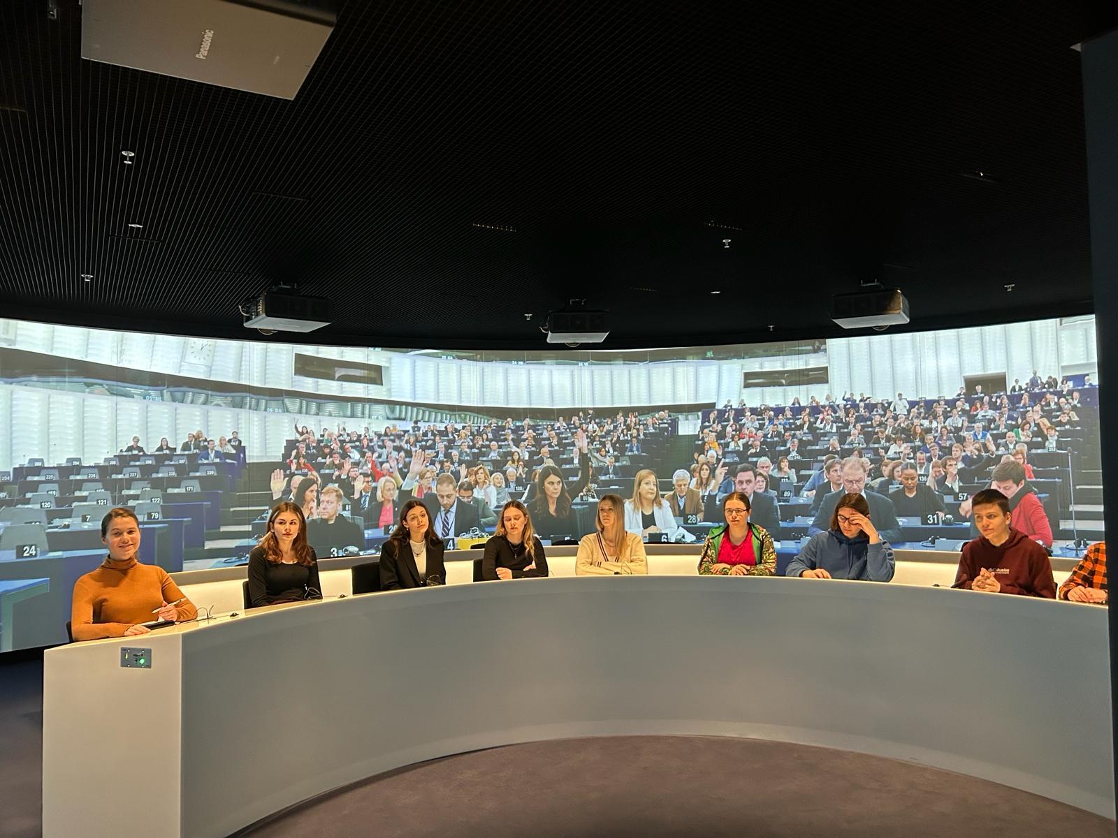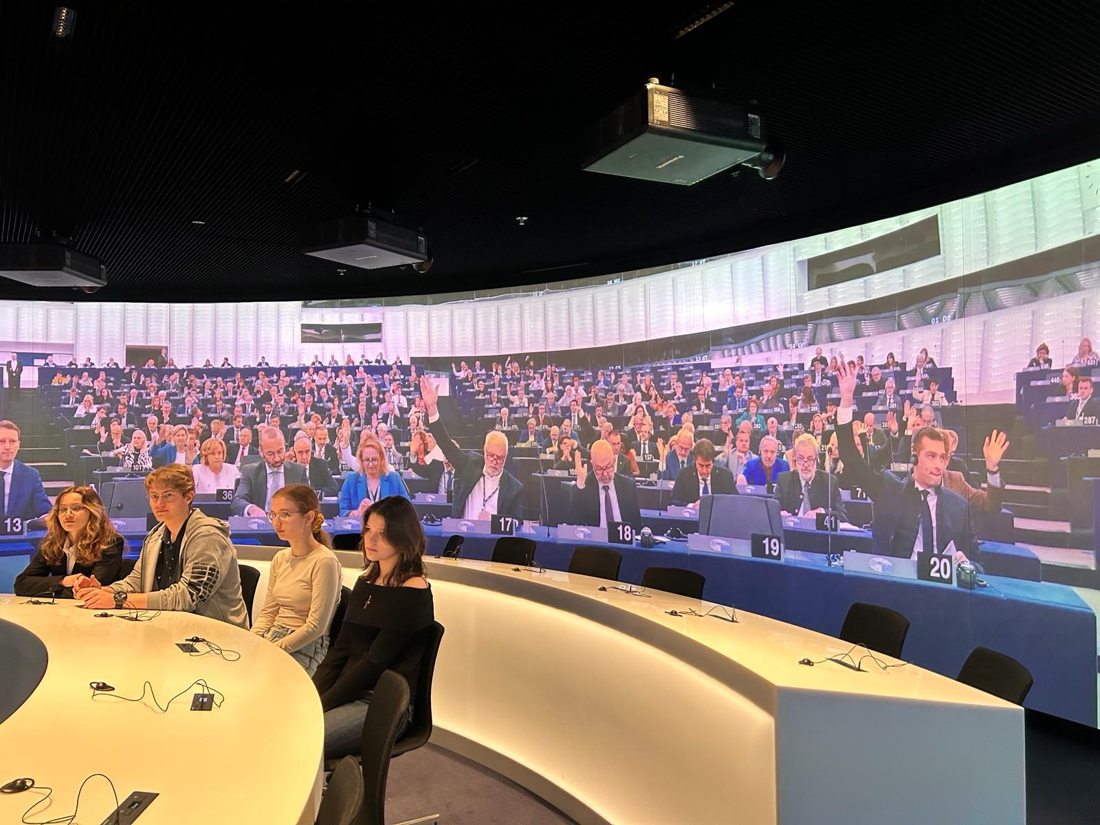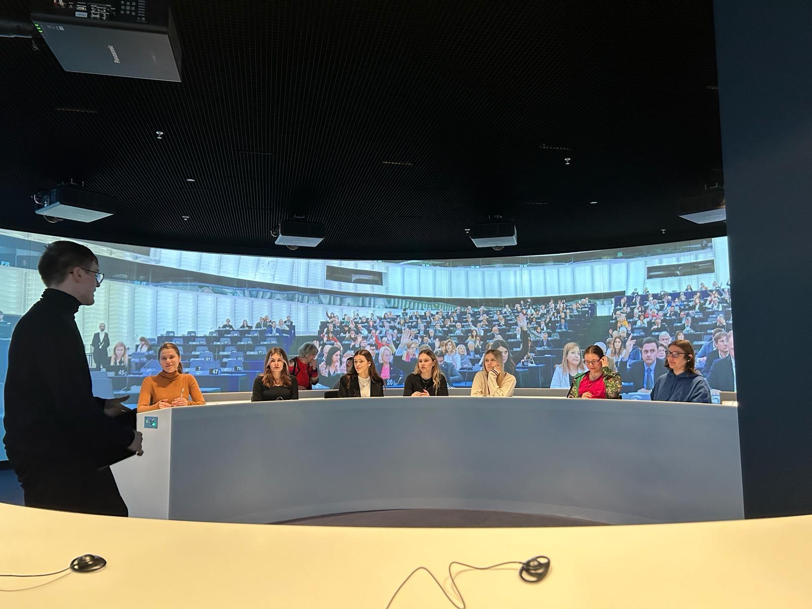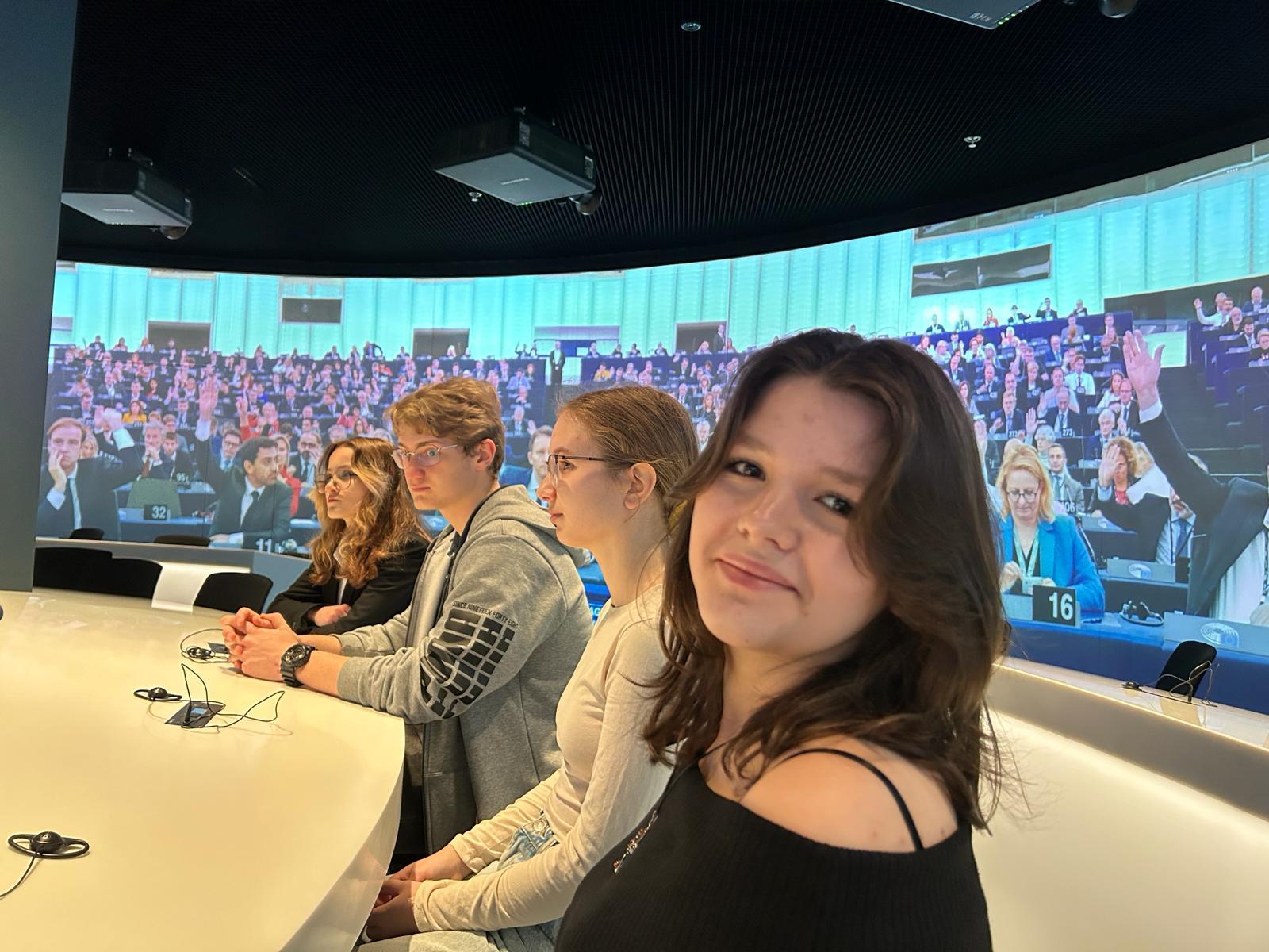 Na początek zwiedziły centrum Europa Experience w Biurze Parlamentu Europejskiego w Warszawie. Kolejnym punktem były zajęcia warsztatowe prowadzone przez dra Mateusza Koniecznego – uczennice poznały
