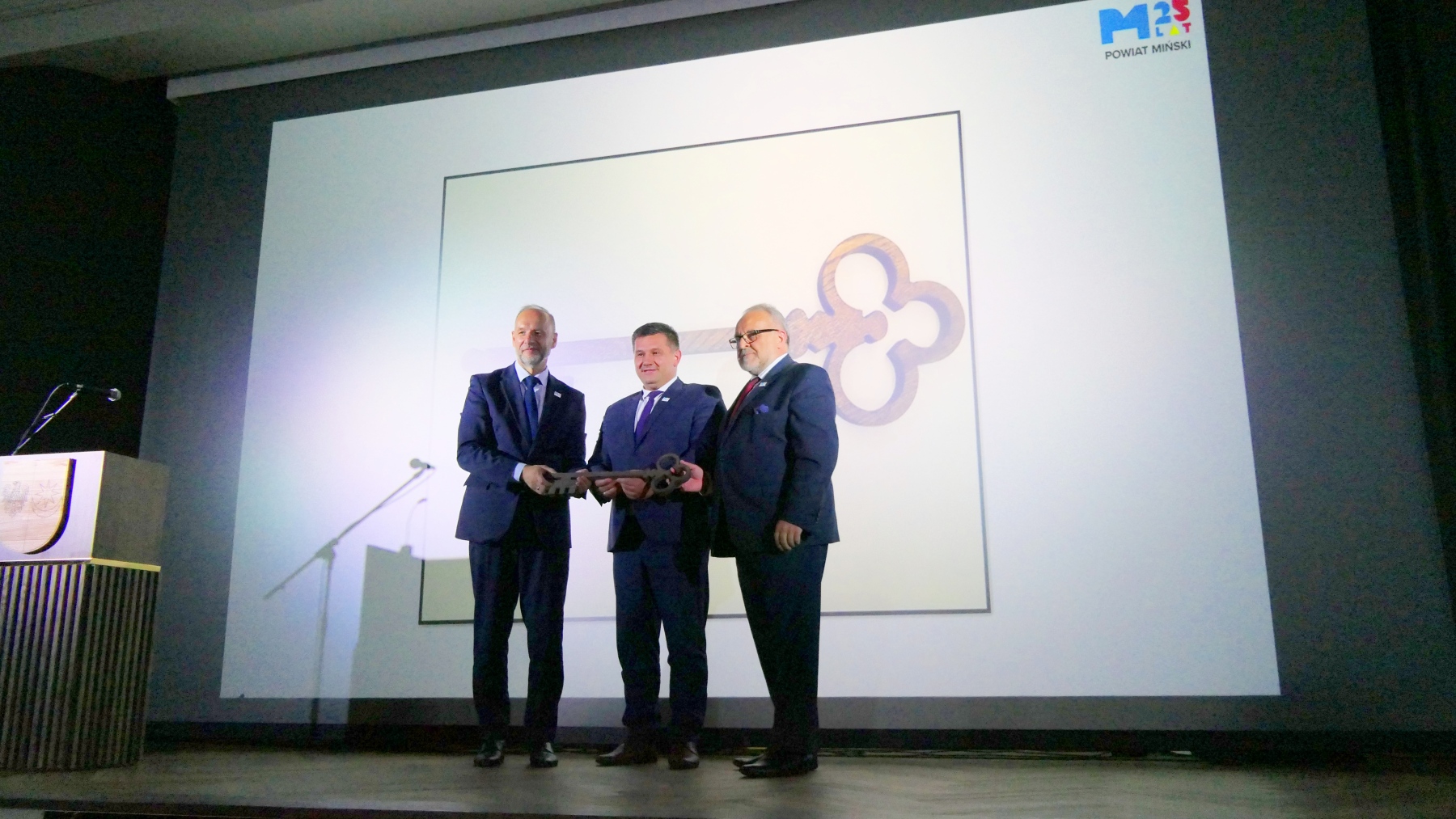 Nas, społeczność Budowlanki, niezwykle cieszy fakt, że podczas uroczystości nastąpiło przekazanie symbolicznego klucza do zmodernizowanej auli. Klucz ?️ z rąk starosty powiatu mińskiego Antoniego Jana Tarczyńskiego odebrał dyrektor Zespołu Szkół nr 1 Adam Trześkowski.