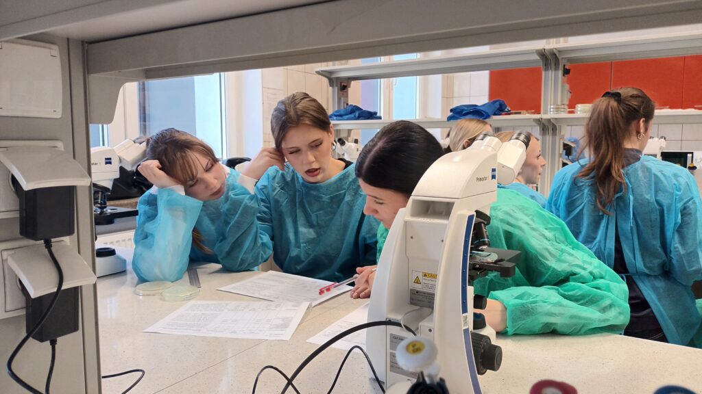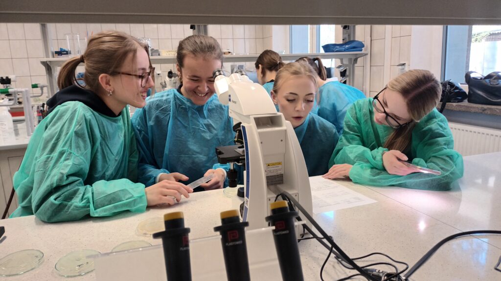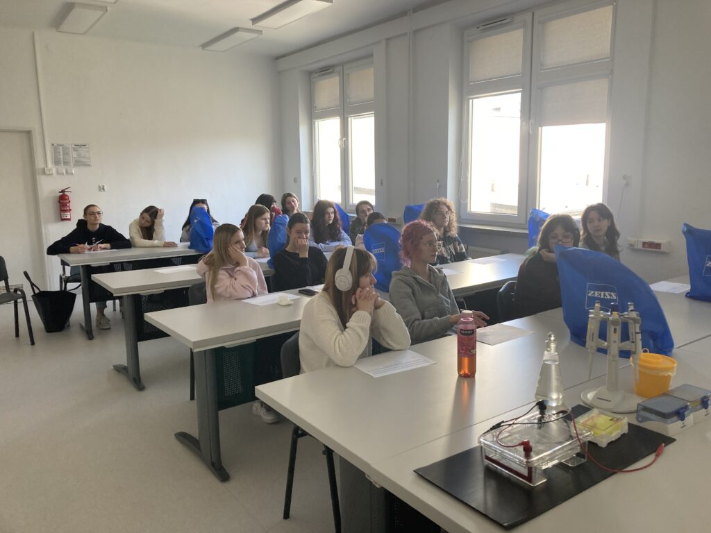 Zajęcia poprowadzili wykładowcy Uniwersytetu: Pani prof. Barbara Kot – zajęcia z mikrobiologii, Pani prof. Joanna Mitrus – zajecia na temat: „Ostre cięcie – enzymy restrykcyjne w służbie inzynierii genetycznej” oraz Pan dr hab. Paweł Czerniewicz na temat: „Luminescencja biomolekuł” 🧬