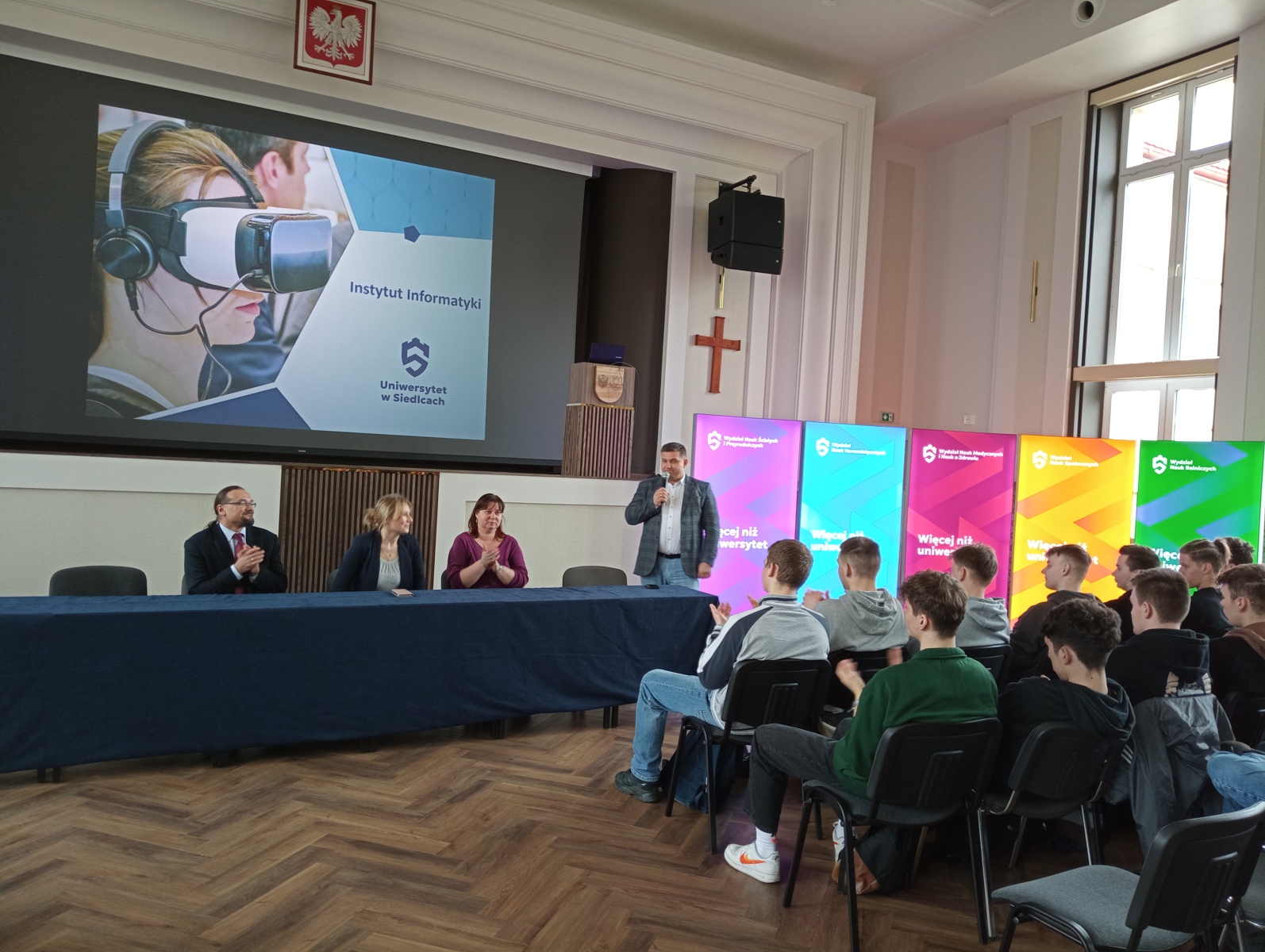 ??️ W ubiegłym tygodniu gościliśmy w naszej szkole dwie uczelnie wyższe – Uniwersytet Siedlecki oraz Politechnikę Warszawską. Pierwszą reprezentował dr Artur Niewiadomski z Wydziału Informatyki, natomiast drugą dziekan Wydziału Inżynierii Lądowej dr Wioletta Jackiewicz-Rek oraz dziekan Wydziału Elektroniki i Technik Informacyjnych dr Krzysztof Madziar.