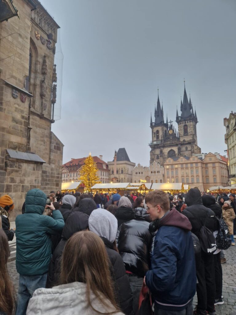 Największą atrakcją wyjazdu była wizyta na jarmarkach świątecznych. Kolorowe stragany, migoczące światełka, kolędy oraz ogromna choinka stworzyły niezapomniany klimat. Mieliśmy okazję spróbować tradycyjnych przysmaków, napić się gorącej czekolady i kupić świąteczne pamiątki. Wycieczka była pełna uśmiechu, wspólnych rozmów i integracji, a świąteczny nastrój udzielił się wszystkim uczestnikom. Wróciliśmy z Pragi z głowami pełnymi wspomnień i sercami przepełnionymi magią świąt🎄✨