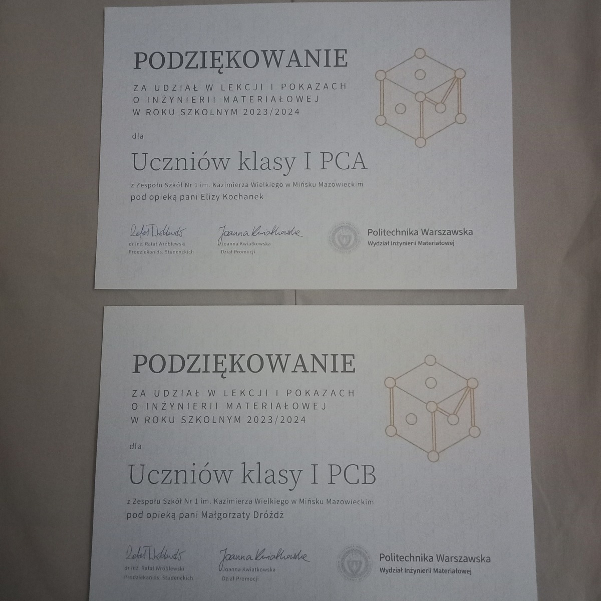 Klasy 1 PCA i 1 PCB wraz z wychowawczyniami wzięły udział w lekcji i pokazach o inżynierii materiałowej na Wydziale Inżynierii Materiałowej Politechniki Warszawskiej ?