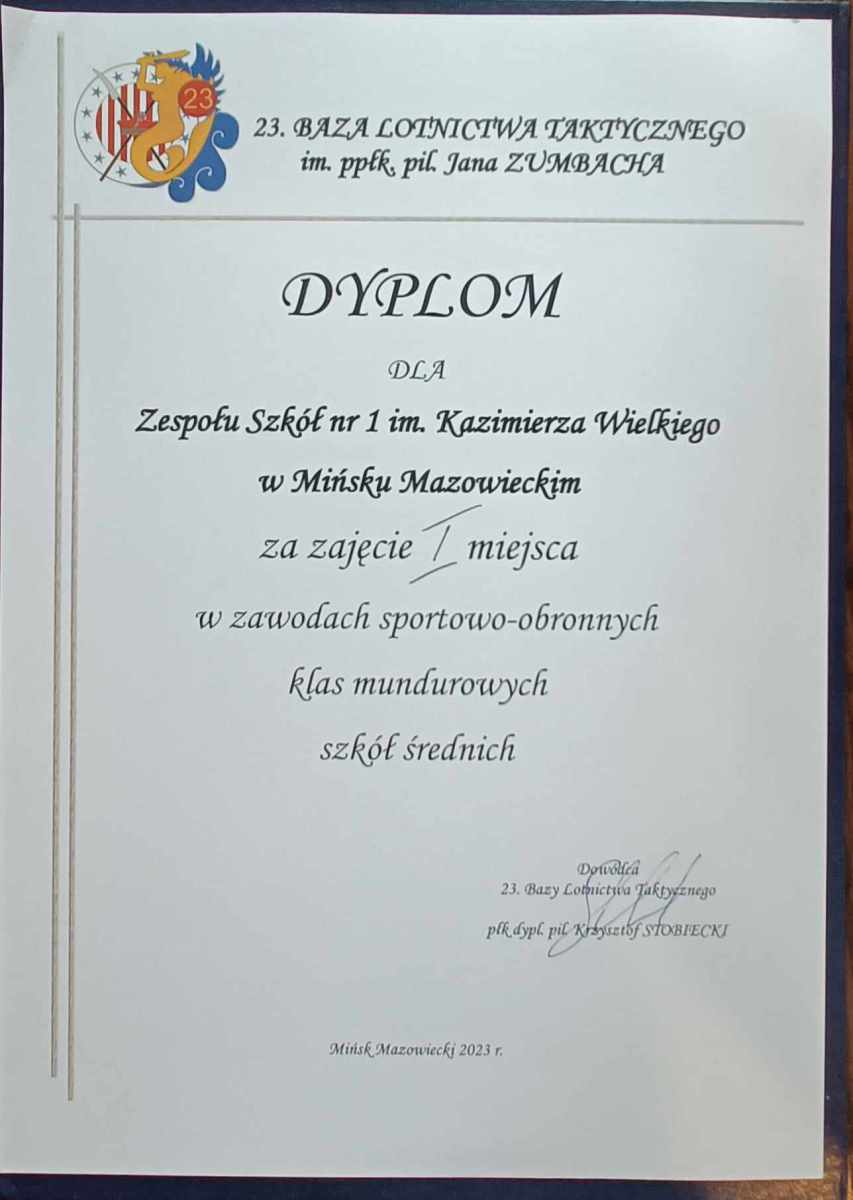 5.10.2023 r. pod opieką nauczyciela Agnieszki Bąk reprezentacja klasy 4 OPW w składzie: Kamil Gańko (kapitan), Szymon Świętochowski, Rafał Sarna, Oliwia Poręba i Natalia Michalczyk, wzięła udział w zawodach sportowo-obronnych o puchar Dowódcy 23. Bazy Lotnictwa Taktycznego ?
