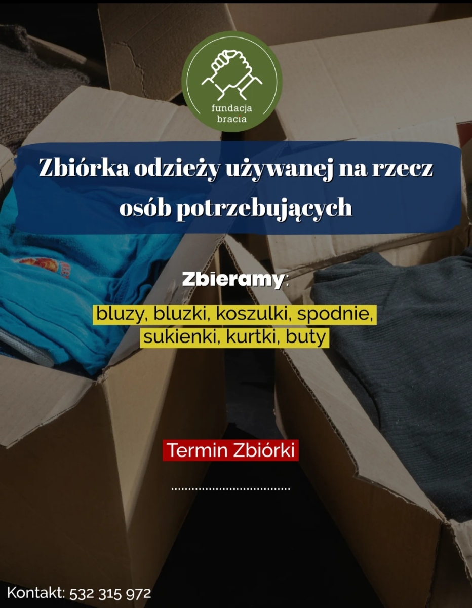 w najbliższą środę (29.03), w najbliższy piątek (31.03), a także 3-5.04, wraz z Fundacja Bracia organizujemy zbiórkę odzieży używanej ?? dla biednych rodzin z Mazowsza, oraz zbiórkę słodyczy ? ? dla niepełnosprawnych dzieci z ubogich rodzin z Mazowsza. Zachęcamy do wsparcia inicjatywy! Zwyczajowo, oczekujcie nas o poranku ? 😉