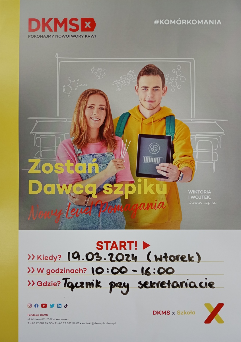 Zostań dawcą szpiku! 15 marca 2024 W ZS 1 bierzemy udział w programie DKMS ? Zostań dawcą szpiku! ❤️ Pokaz slajdów